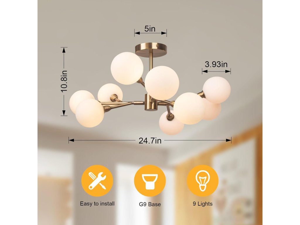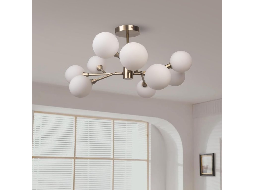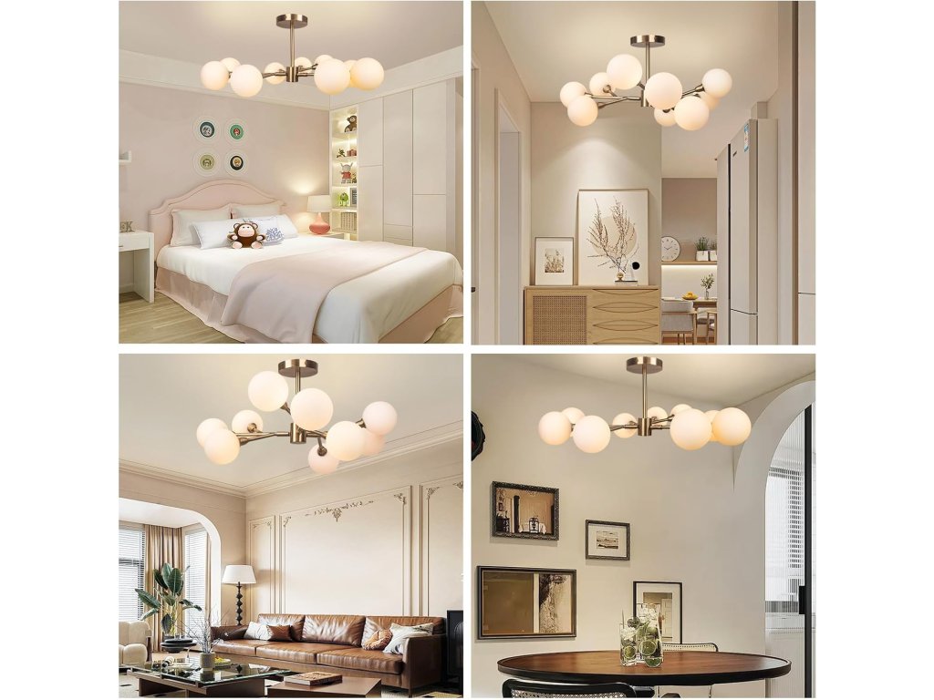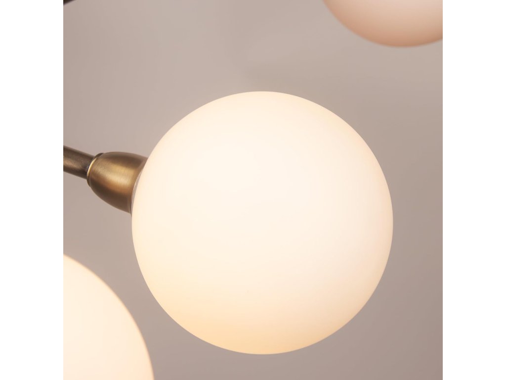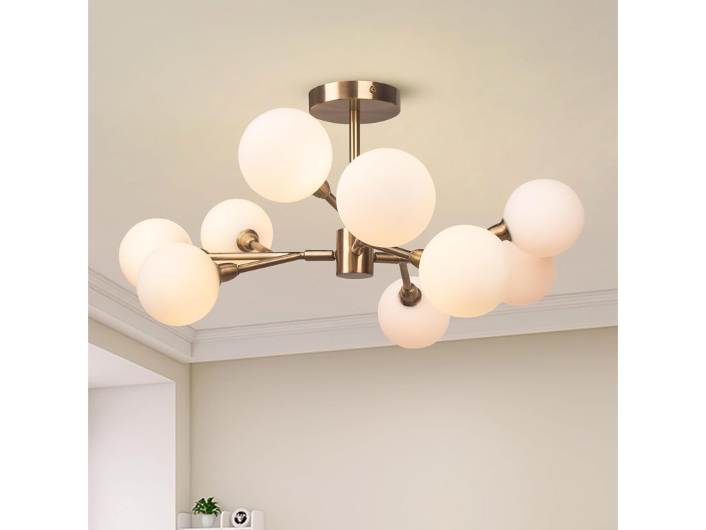 Moderní stropní lustr značky Lianheng kombinuje elegantní kovové tělo v bronzovém provedení s devíti kulovými opálovými stínidly. Je ideální do obývacích pokojů, ložnic, jídelen či hal, kde dodá interiéru styl a rovnoměrné osvětlení. Devět světelných bodů zajistí příjemné, měkké a rovnoměrné světlo bez ostrých stínů.