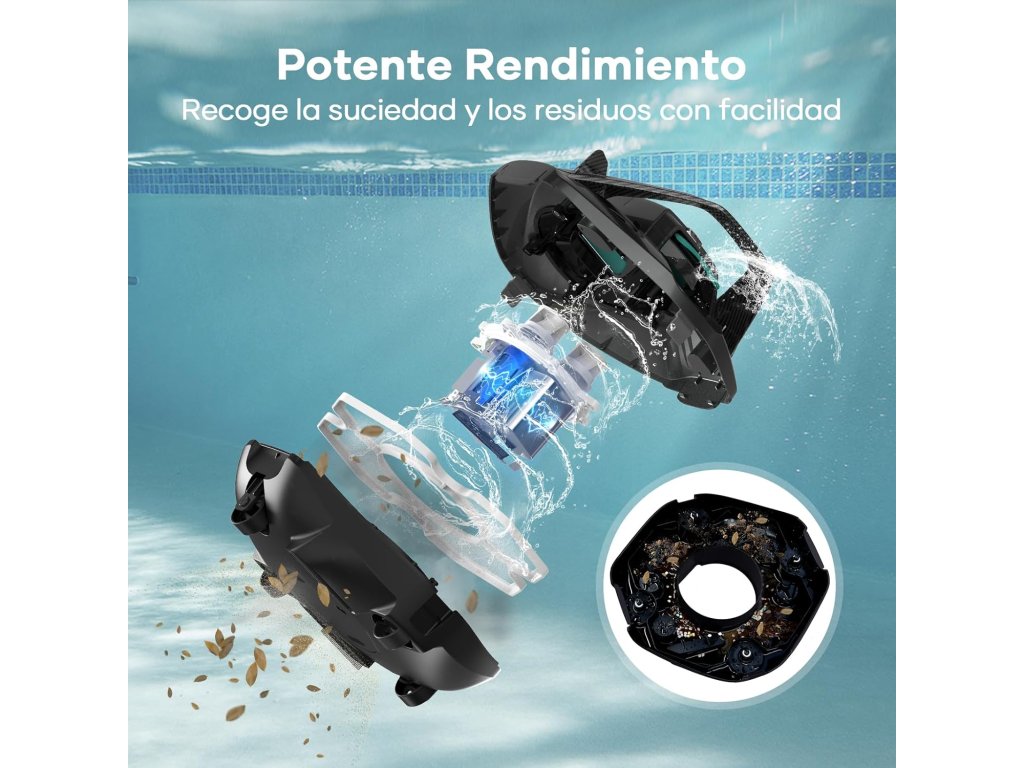 Robot dokáže pracovat až 90 minut na jedno nabití a je vhodný pro nadzemní i zapuštěné bazény s plochým dnem až do 80 m². Inteligentní systém pohybu zajišťuje efektivní pokrytí plochy bazénu a důkladné odstranění nečistot.