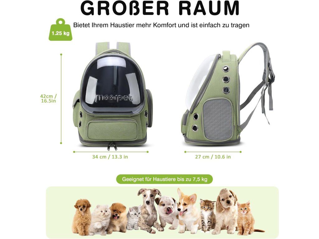 Batoh nabízí dostatek prostoru pro kočky a malé psy do 7,5 kg. Díky kombinaci pevné konstrukce a měkkého textilu je zajištěno pohodlí i stabilita během přenášení.