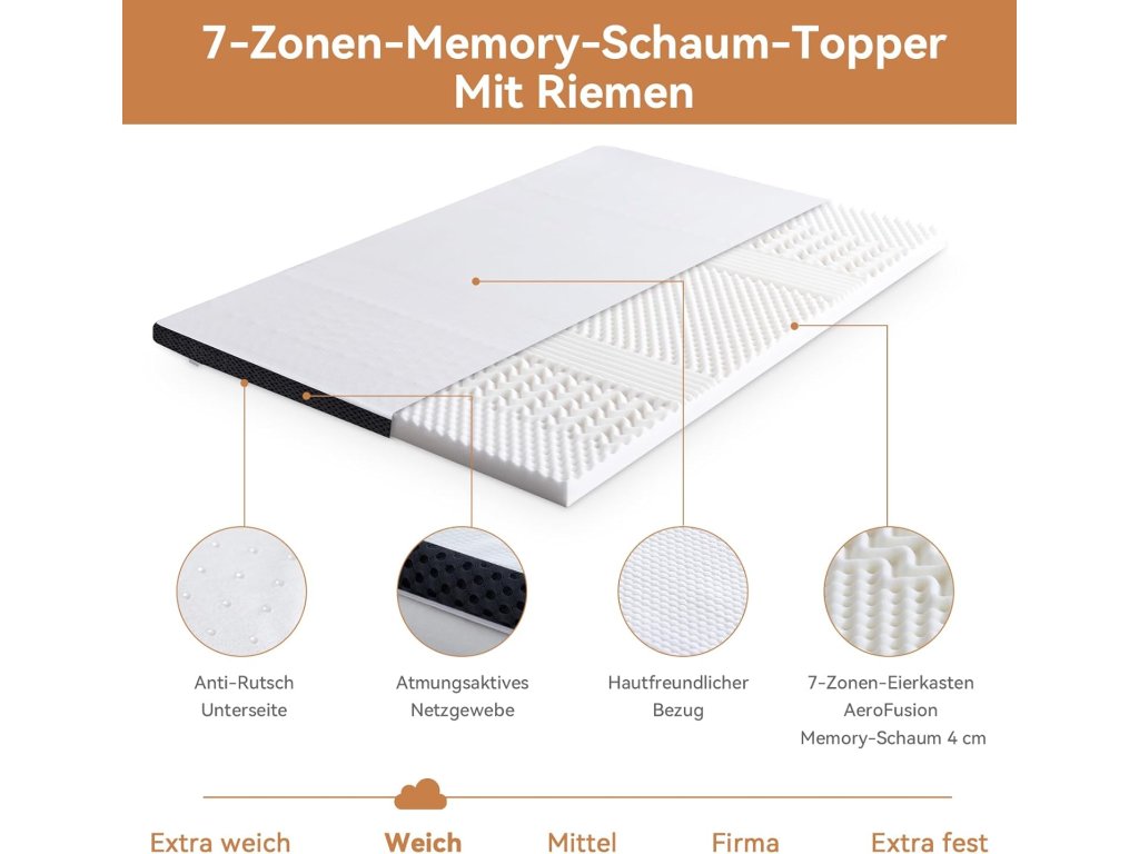 - Paměťová pěna 4 cm – optimální kombinace pohodlí a opory
