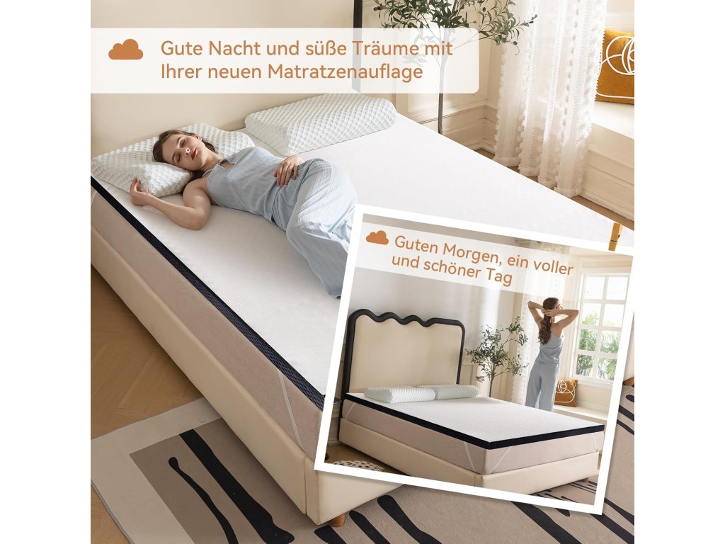 Ideální řešení pro zlepšení starší matrace nebo zvýšení pohodlí nové matrace. Pomáhá snížit tlak na klouby a páteř a podporuje klidnější spánek 😴