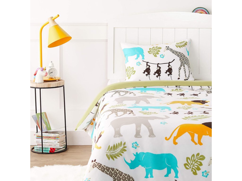Dětské povlečení Amazon Basics je navrženo speciálně pro dětské postýlky a menší dětské postele. Sada obsahuje oboustranný povlak na peřinu a povlak na polštář s hravým motivem zvířátek, který zpříjemní prostředí dětského pokoje.