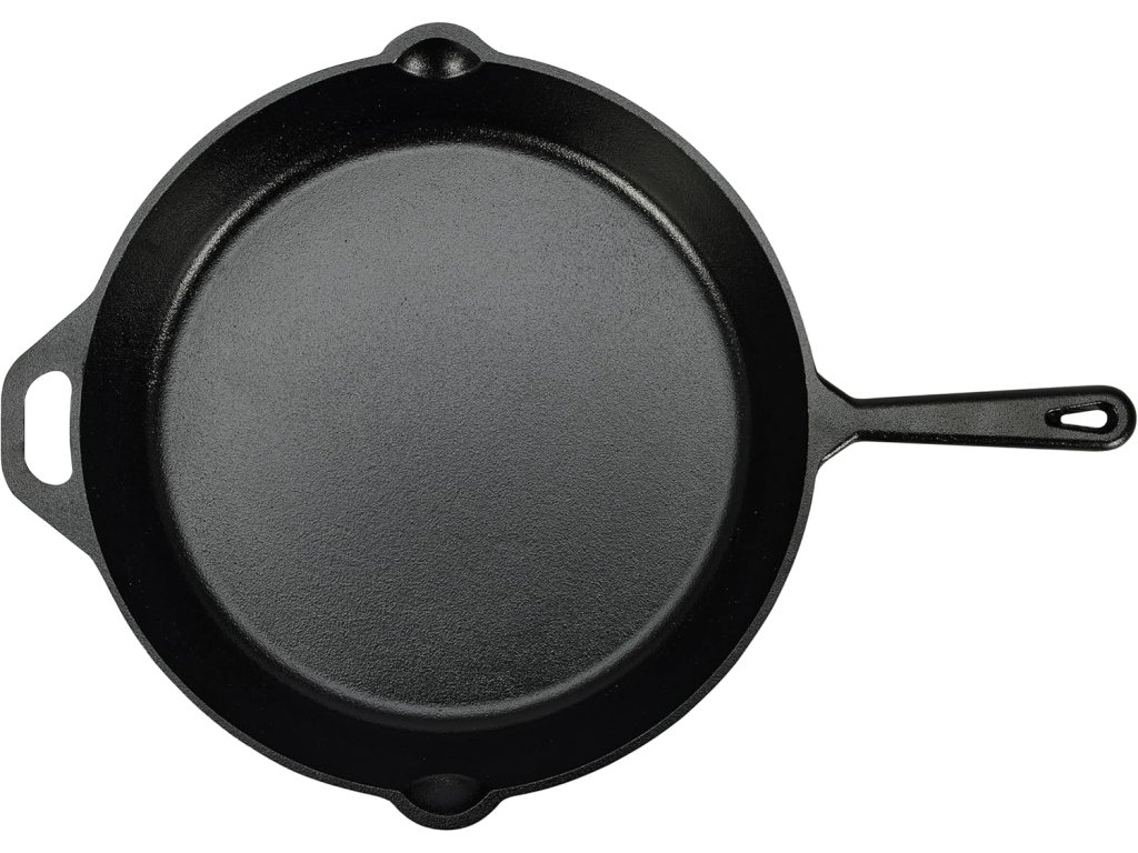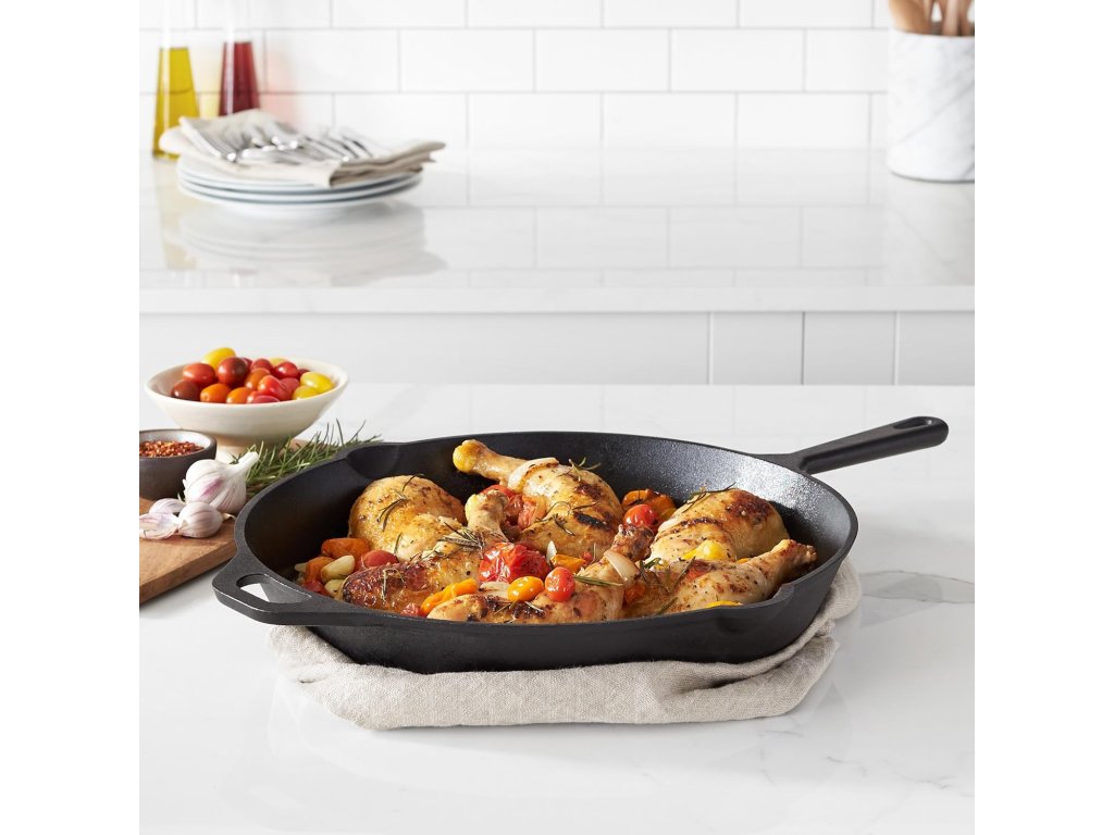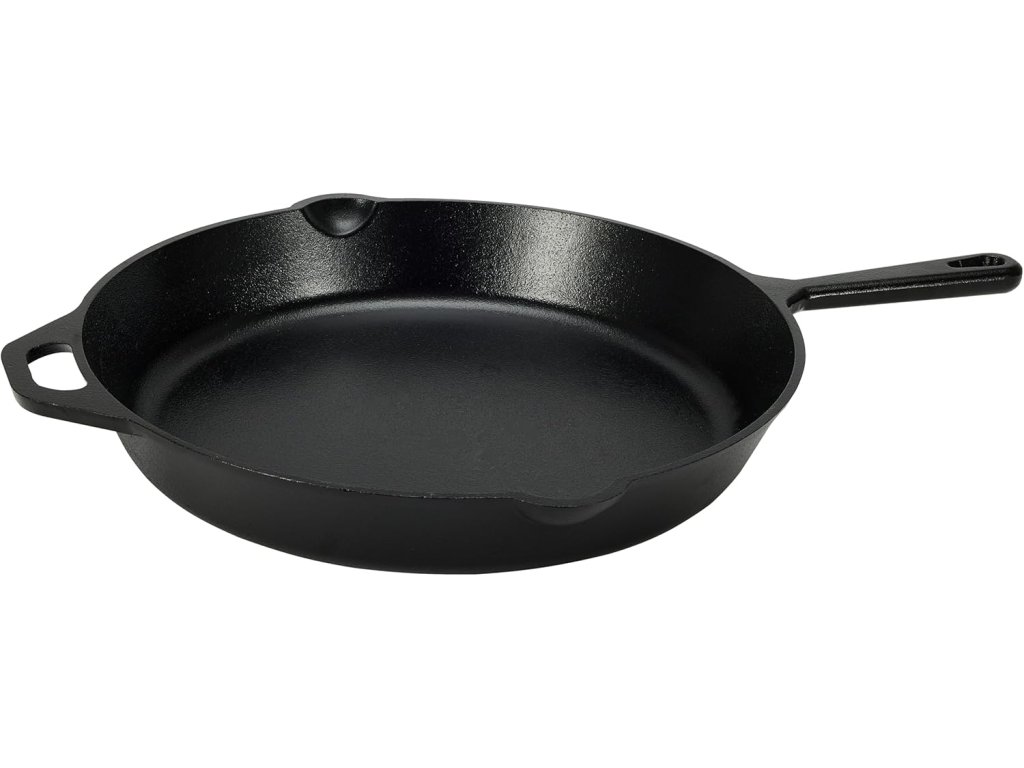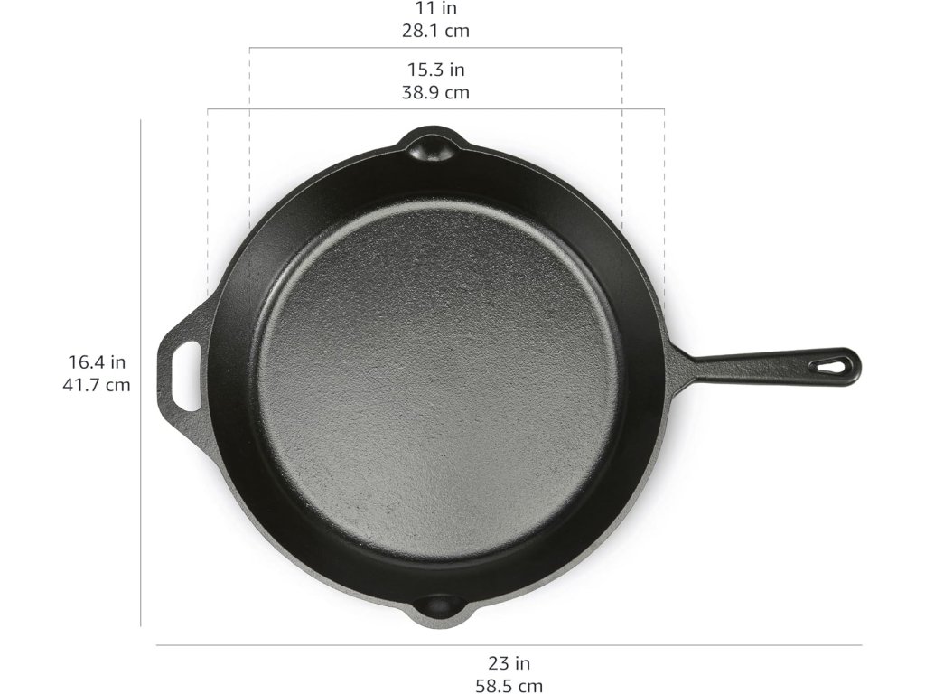 Amazon Basics litinová pánev o průměru 38,1 cm (15 inch) je pevná a univerzální pánev předem ochucená přírodním olejem (pre-seasoned), která je připravena k okamžitému použití. Díky masivní litinové konstrukci poskytuje vynikající akumulaci a rovnoměrné rozložení tepla, ideální pro smažení, pečení i grilování.