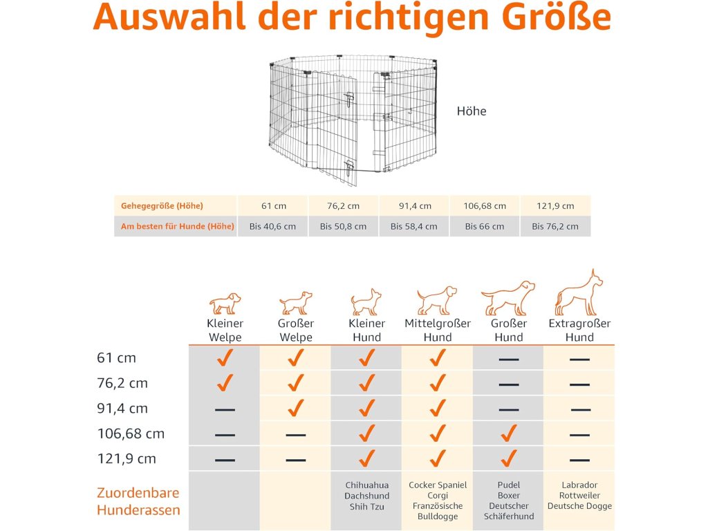 Amazon Basics skládací ohrádka pro psy a domácí zvířata poskytuje bezpečný a flexibilní prostor pro hraní, odpočinek nebo krátkodobé omezení pohybu zvířete. Díky modulární konstrukci lze ohrádku sestavit do osmihranného, čtvercového nebo obdélníkového tvaru podle dostupného prostoru.