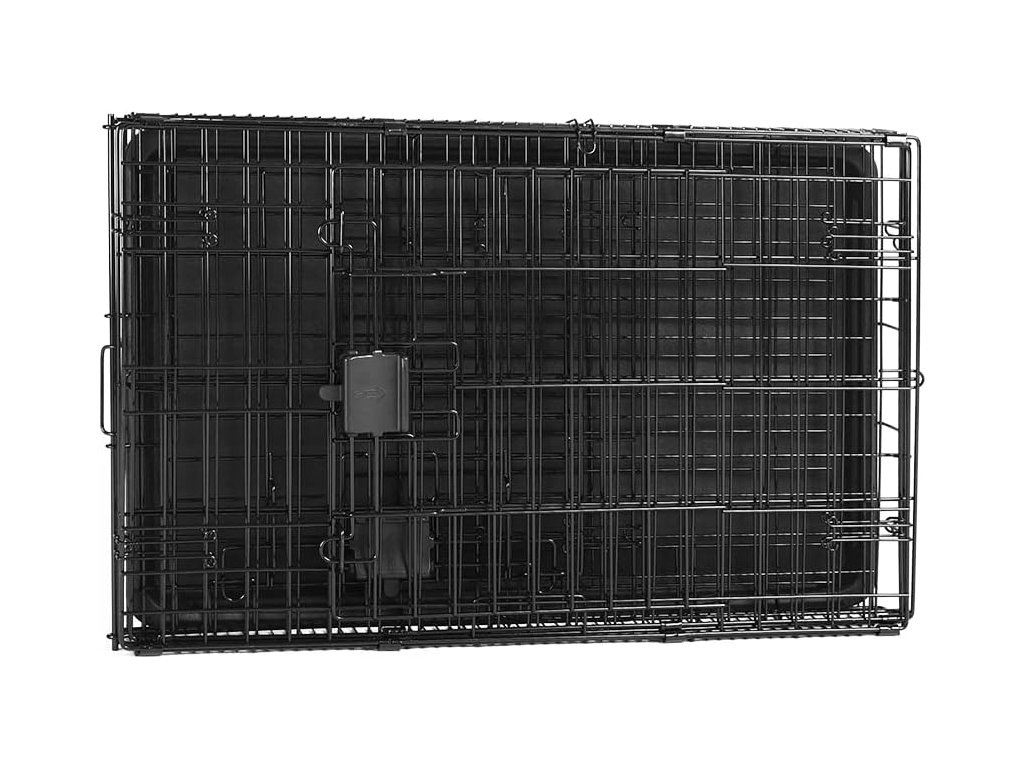 Klec je vybavena dvojitými dvířky – předními a bočními – což umožňuje snadný přístup a flexibilní umístění v prostoru. Bezpečné západky zabraňují samovolnému otevření a udržují psa v bezpečí.