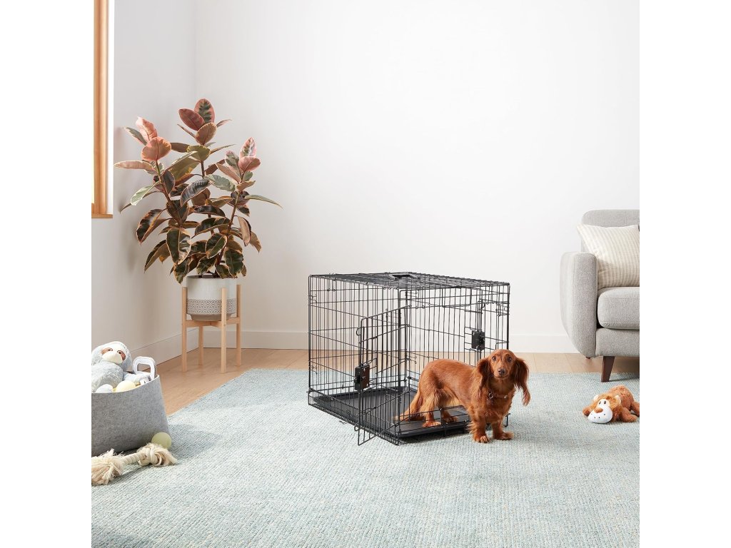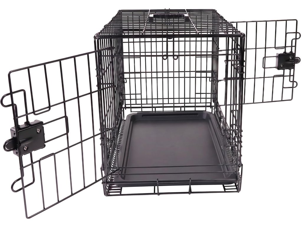 Amazon Basics skládací psí klec z kovového drátu dvojité dveře 76 × 48 × 53 cm černá