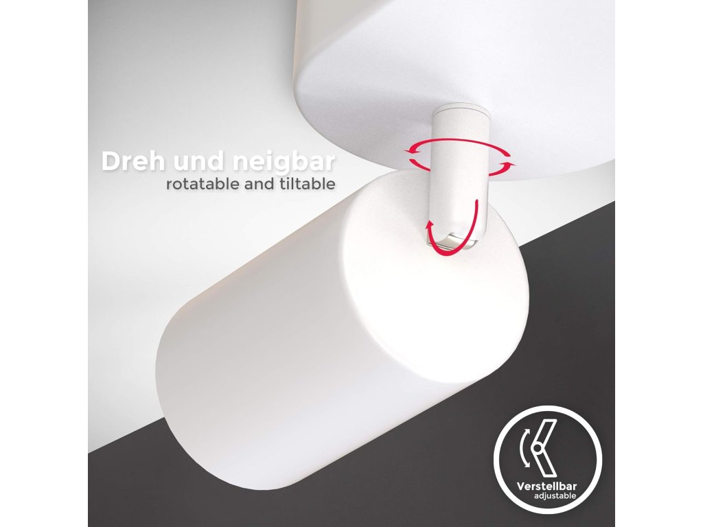 Otočná stropní lampa B.K.Licht je moderní a funkční svítidlo určené pro vnitřní použití. Čtyři samostatně nastavitelné bodové reflektory umožňují nasměrovat světlo přesně tam, kde je potřeba – ideální pro kombinaci hlavního a akcentového osvětlení.