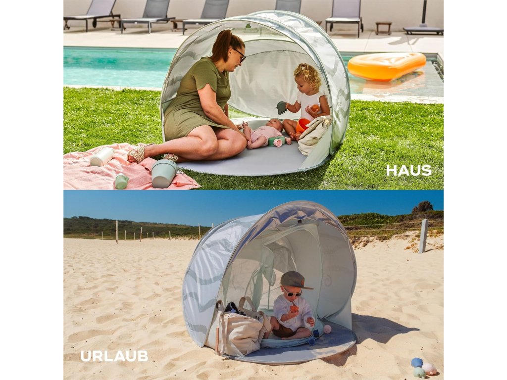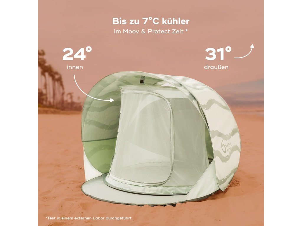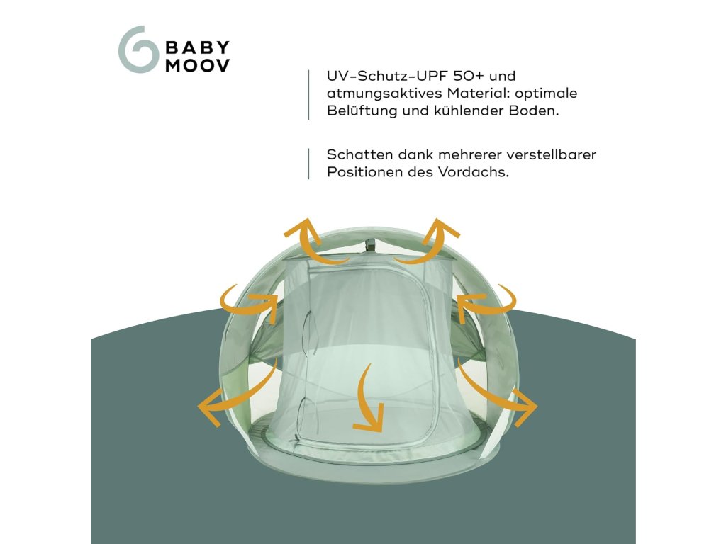 Plážový stan Babymoov Moov & Protect poskytuje vysokou UV ochranu UPF 50 +, která spolehlivě chrání dítě i dospělé před škodlivým slunečním zářením. Díky inovativní konstrukci s dvojitou střechou nabízí optimální proudění vzduchu a chladivý efekt, takže v horkých dnech je uvnitř až o několik stupňů chladněji než venku. Stan je vybaven moskytiérou na zip, ventilací a chladivou podlahou, je snadno skládací do kompaktní velikosti a je ideální pro pláž, park nebo zahradu.