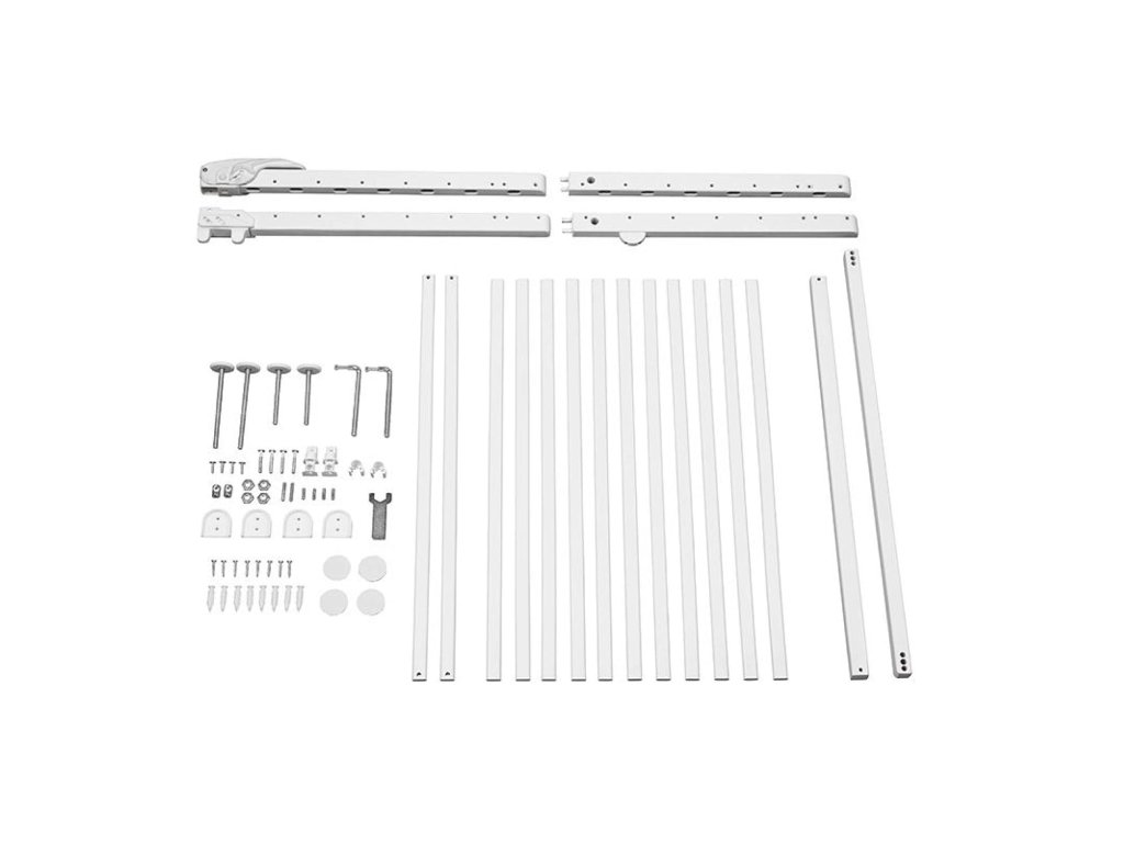 Mřížku lze instalovat dvěma způsoby – přítlačně bez vrtání nebo šroubováním pro pevné a trvalé uchycení. Nastavitelná šířka umožňuje použití v otvorech od 63,5 do 106 cm, což zajišťuje vysokou flexibilitu při montáži.