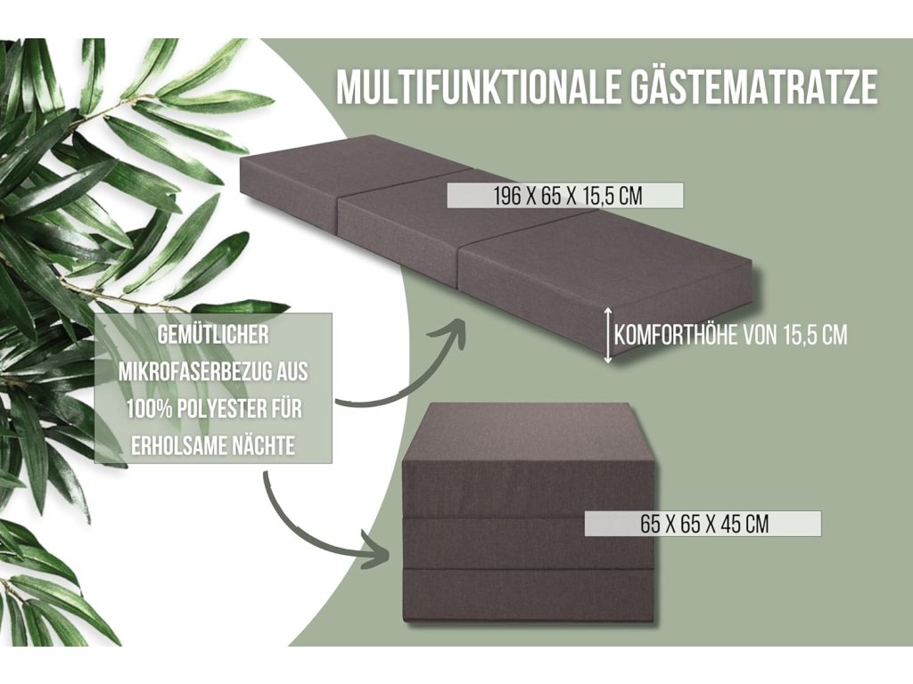 Praktická a pohodlná matrace pro hosty s komfortní výškou 15 cm nabízí kvalitní spánek i při příležitostném přespání. Díky skládacímu provedení ji snadno uložíte a přenesete.
