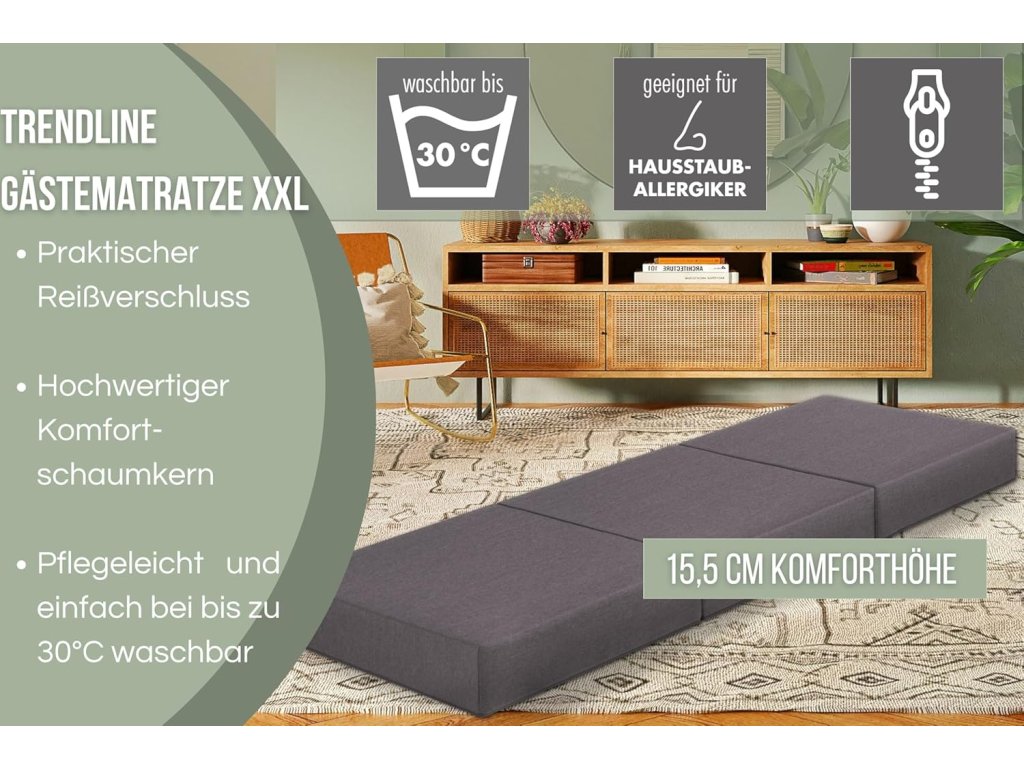 Badenia Trendline XXL – skládací matrace pro hosty 196 × 65 × 15,5 cm