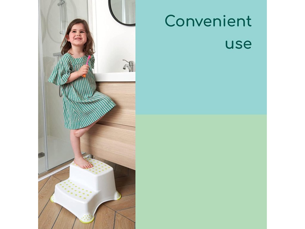 Praktická dětská schůdková stolička se dvěma stupni pomáhá dětem dosáhnout na umyvadlo, toaletu nebo kuchyňskou linku. Díky protiskluzovým prvkům na nášlapných plochách i spodní části zajišťuje maximální stabilitu a bezpečí při používání. 👶✨