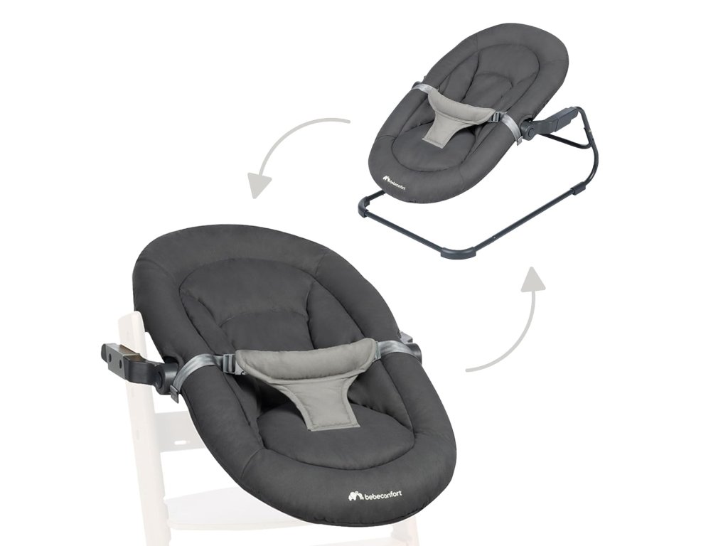 Bebeconfort Timba Baby je praktická kolébka 2 v 1, která umožňuje mít novorozence vždy nablízku. Lze ji používat jako samostatné lehátko na podlaze nebo ji jednoduše připevnit na vysokou židli Timba Baby, čímž se z židle stává plnohodnotná jídelní židle již od narození.