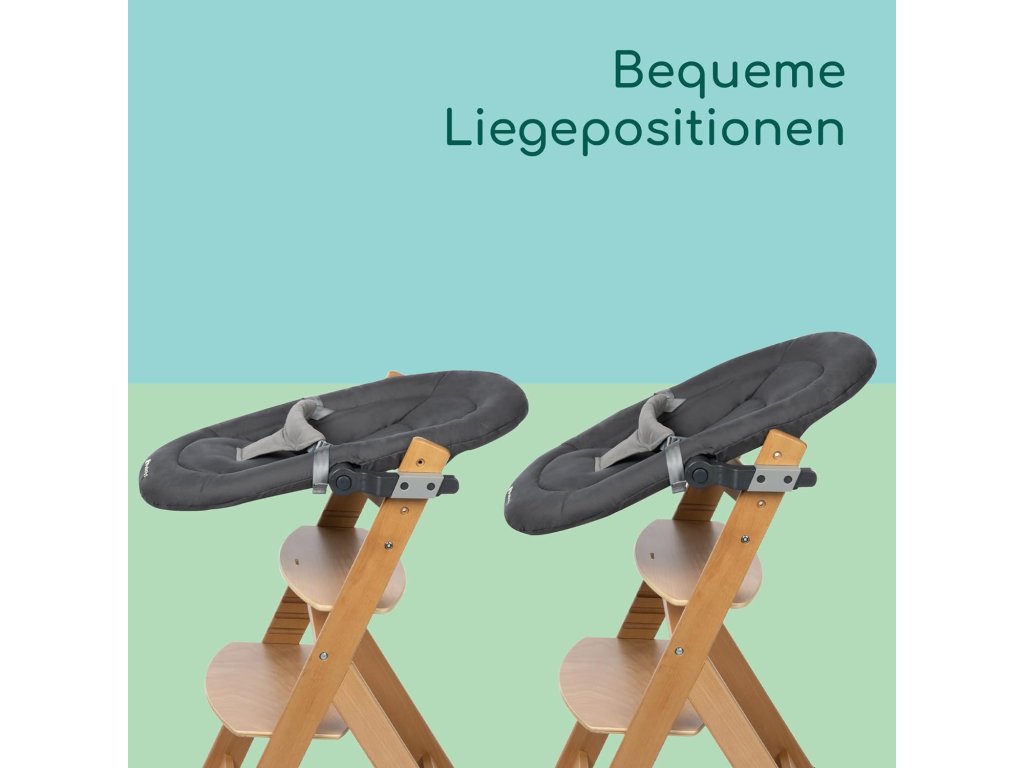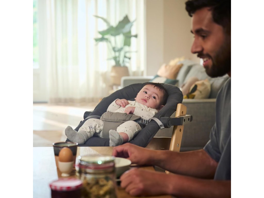 Kolébka je vhodná pro děti od narození do přibližně 6 měsíců nebo do hmotnosti 9 kg. Moderní šedé provedení se snadno kombinuje s interiérem a ladí s vysokou židlí Timba Baby.