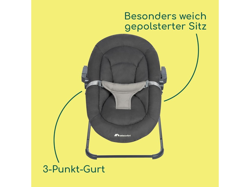 Ergonomicky tvarované lehátko poskytuje dítěti pohodlnou a bezpečnou polohu. Měkké polstrování a nastavitelné bezpečnostní pásy zajišťují stabilitu i komfort během odpočinku. Lehká, ale pevná konstrukce umožňuje snadnou manipulaci a přenášení.