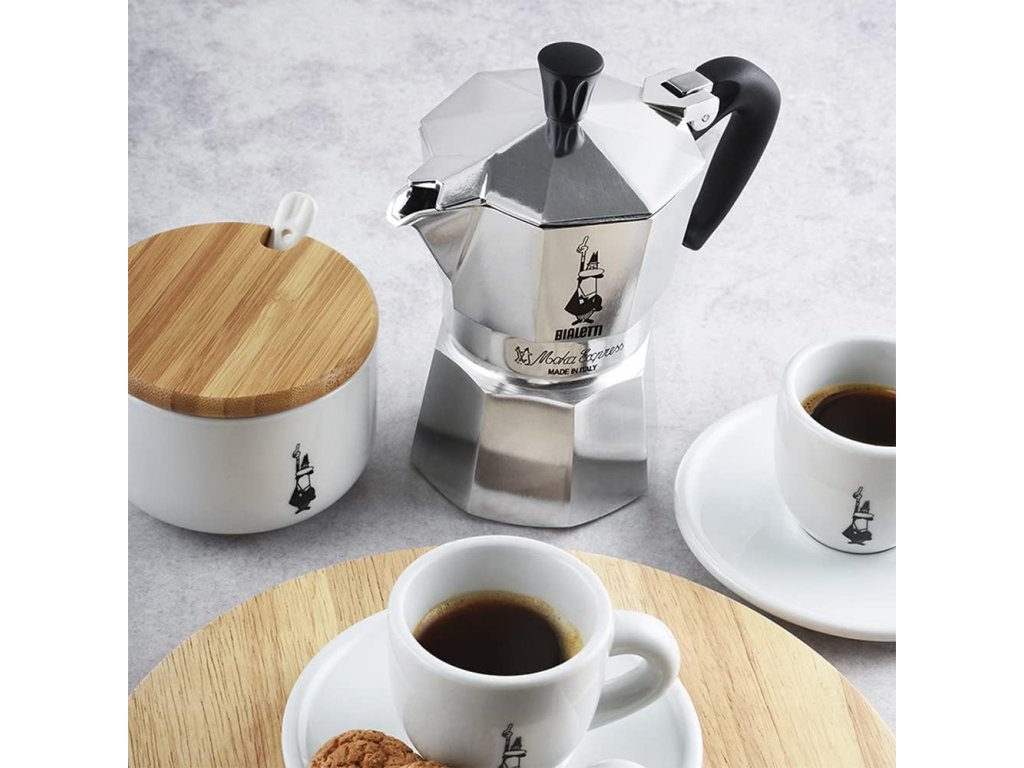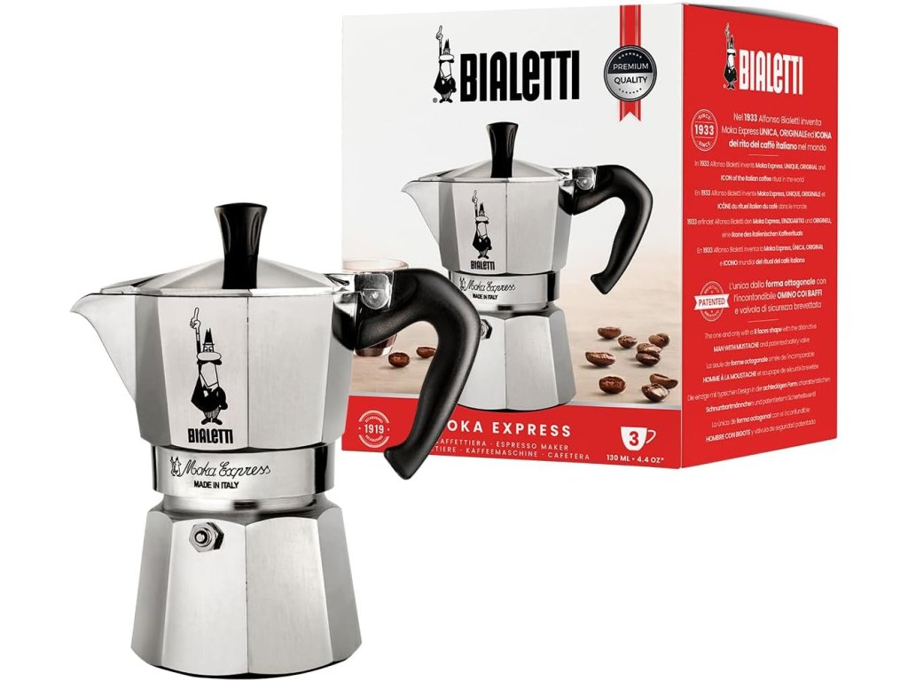 Bialetti Moka Express 3 šálky je klasická moka konvička z italského potravinářského hliníku určená pro přípravu silné kávy připomínající espresso. Obsahuje ergonomickou tepelně odolnou rukojeť a bezpečnostní ventil pro bezpečné použití. Díky kompaktním rozměrům je ideální do menších kuchyní nebo na cestování.