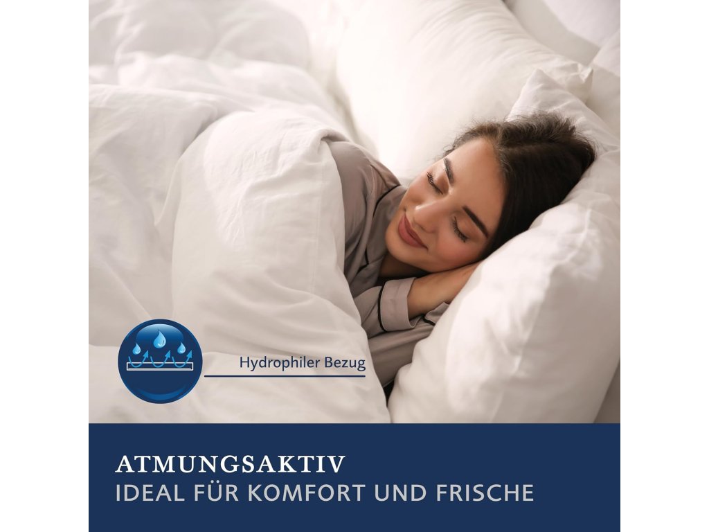 - Optimální regulace vlhkosti: Díky optimální absorpci vlhkosti zajišťuje přikrývka příjemné klima na spaní na léto.