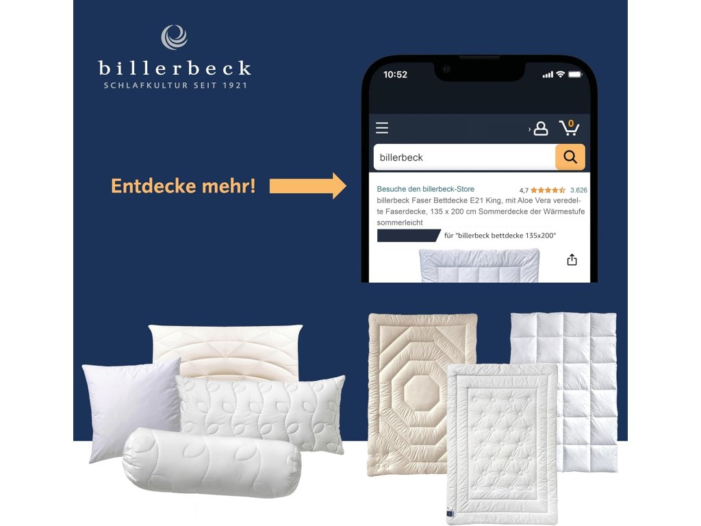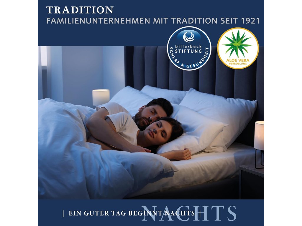 - billerbeck Kultura spánku: Od roku 1921 vyrábí renomovaný rodinný podnik vysoce kvalitní ložní zboží. Všechny přikrývky, polštáře, toppery a matrace jsou vyrobeny z kvalitních materiálů a zajišťují klidný spánek