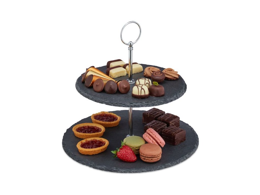 Břidlicový etážový stojan Relaxdays se dvěma úrovněmi je stylovým doplňkem pro servírování sladkých i slaných pokrmů.