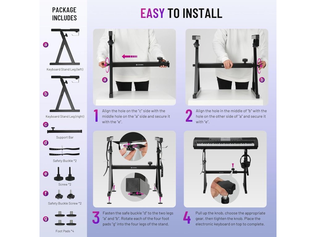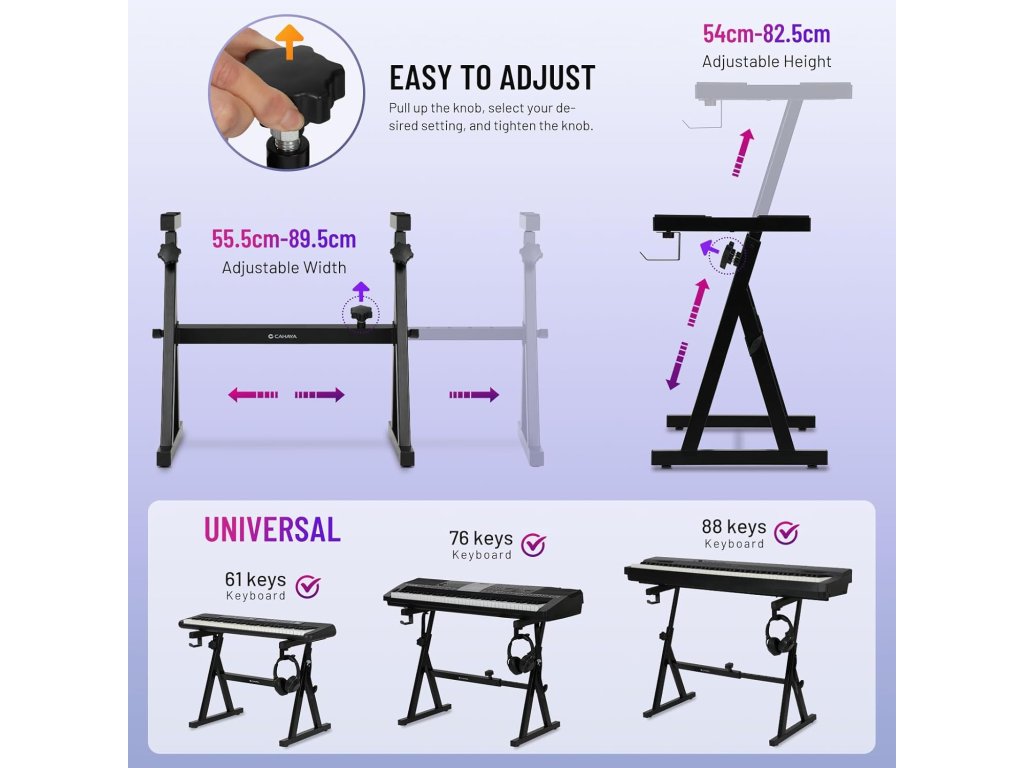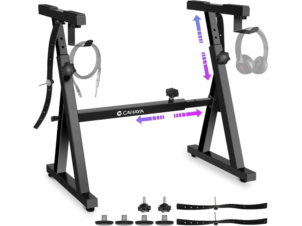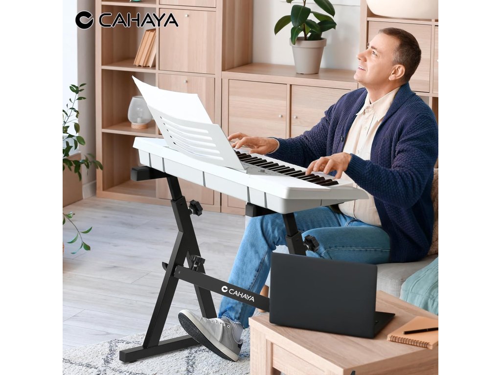 Vylepšený stojan na klávesy CAHAYA s robustní Z konstrukcí nabízí maximální stabilitu a vysokou nosnost až 113 kg. Ideální pro domácí hraní, studio i koncertní použití.