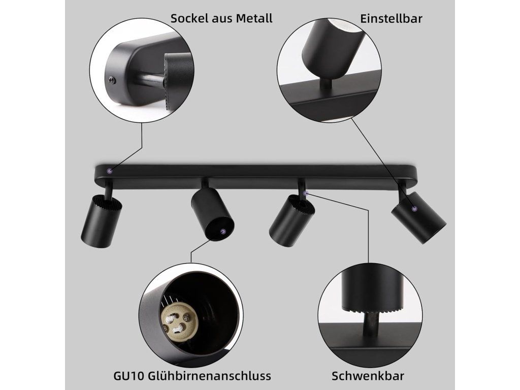 Stropní bodové svítidlo CANMEIJIA GDD-001 je stylové a praktické řešení osvětlení pro moderní interiéry. Díky čtyřem samostatně nastavitelným reflektorům si snadno nasměrujete světlo přesně tam, kde ho potřebujete. 💡