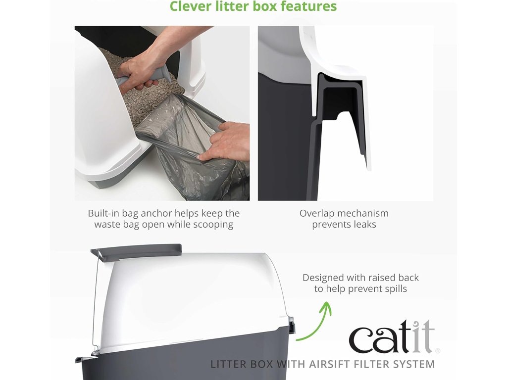 | Vlastnosti: | omezení zápachu, snadné čištění, větší soukromí pro kočku |