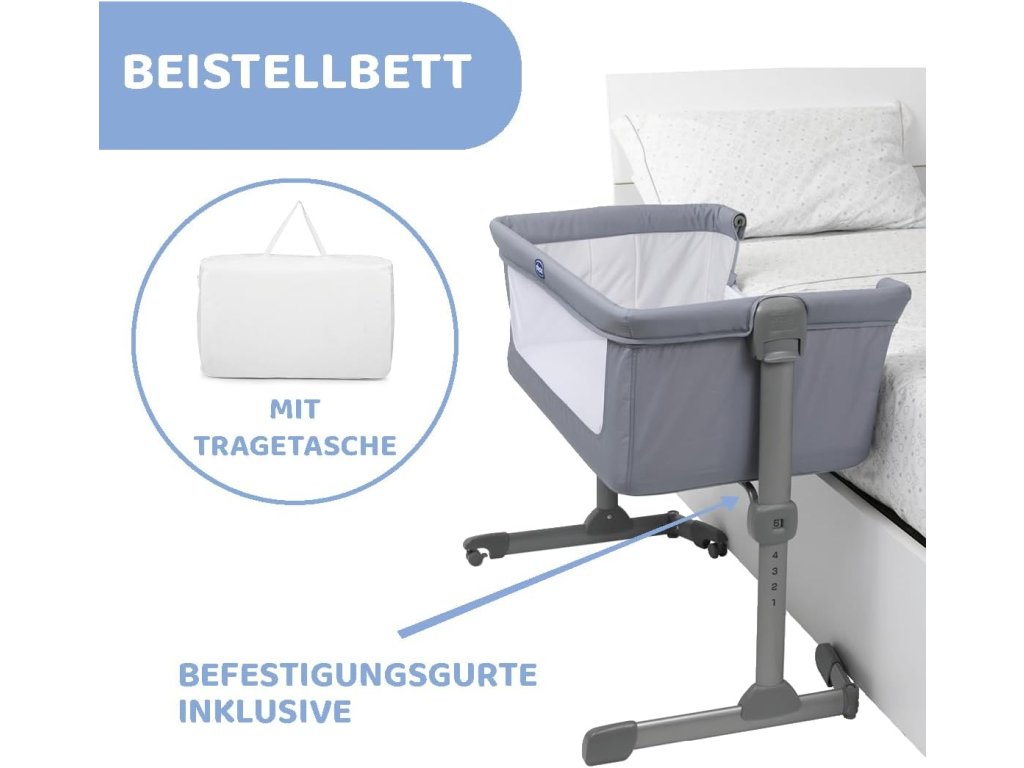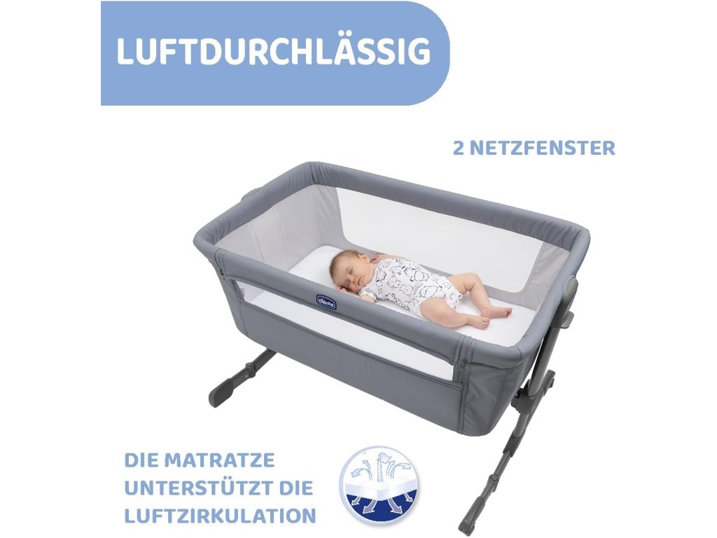 Chicco Next2Me Essential je praktická přístavná postýlka pro novorozence, která umožňuje mít miminko během spánku bezpečně nablízku. Díky možnosti připevnění k posteli rodičů je ideální pro noční péči, kojení i uklidnění dítěte.