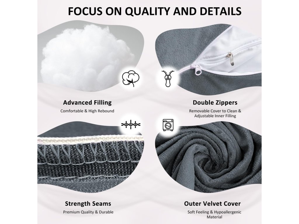 Polštář je ideální nejen během těhotenství, ale také pro každého, kdo hledá pohodlnou podporu při spánku nebo odpočinku. Měkká výplň se přizpůsobuje tvaru těla a zajišťuje stabilní polohu po celou noc.