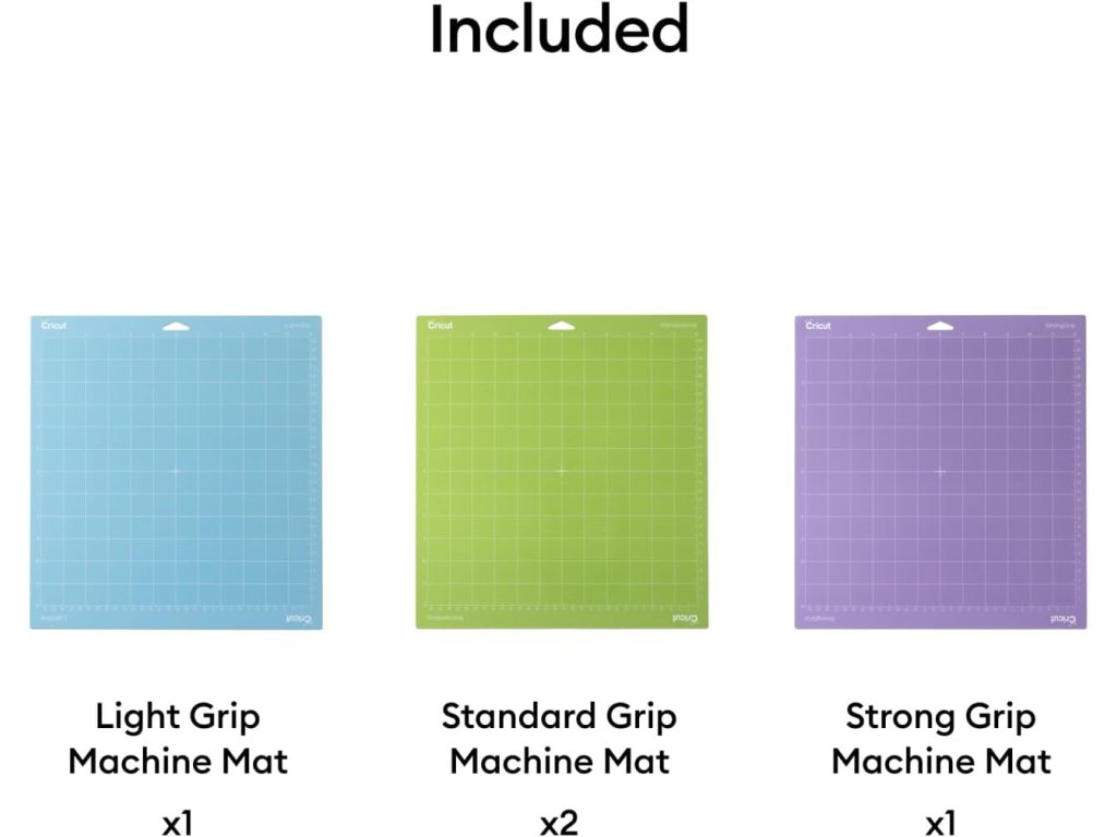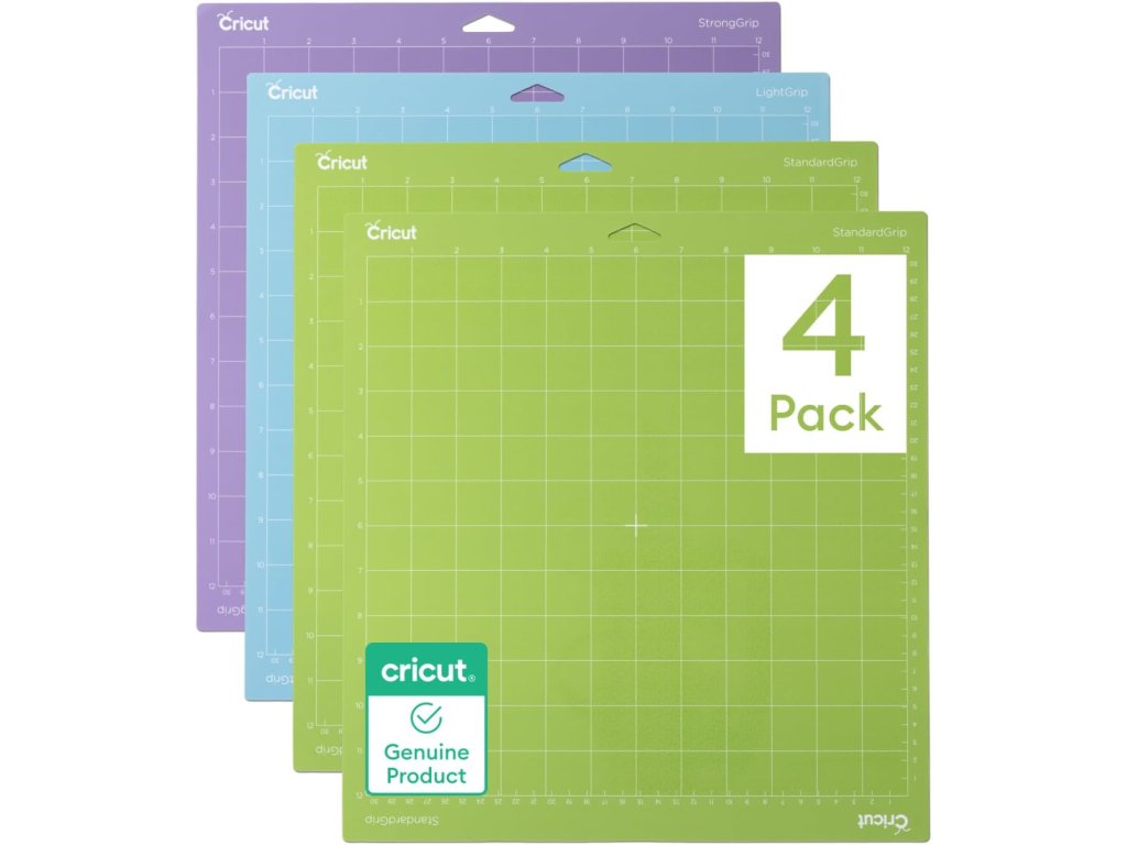 Cricut Mixpack řezacích rohožek obsahuje čtyři rohožky o rozměru 30,5 × 30,5 cm s různou úrovní přilnavosti.