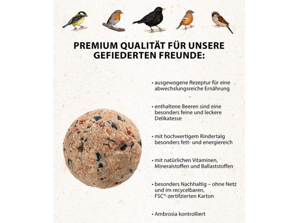 Dehner Natura Premium lojové koule s bobulemi představují kvalitní celoroční krmivo pro volně žijící ptáky, které jim dodá potřebnou energii i živiny během všech ročních období. 🐦