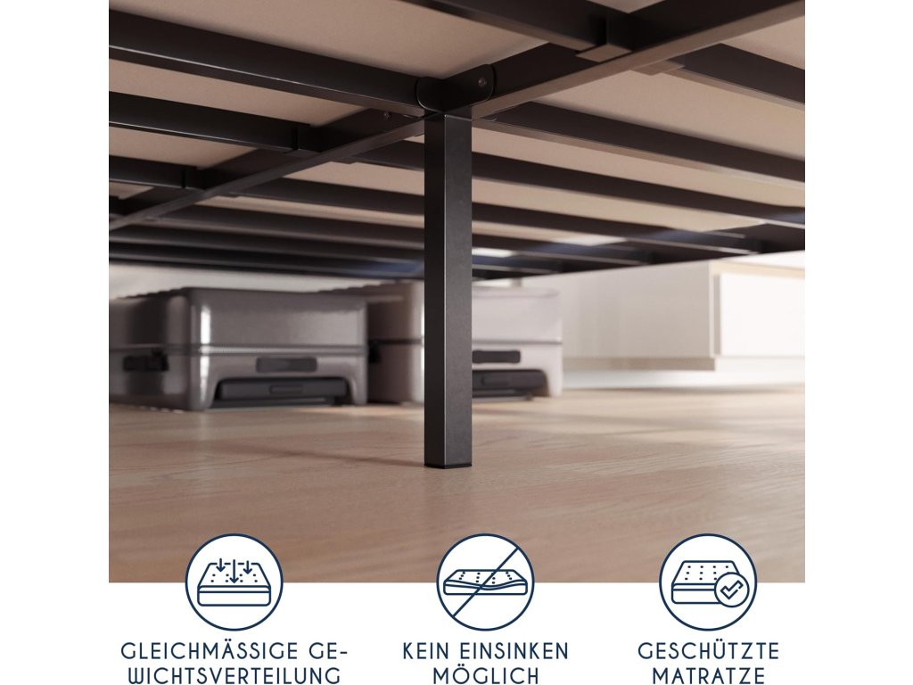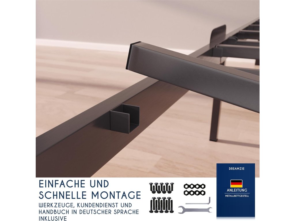 Postel Dreamzie je praktické a pevné řešení pro každodenní spaní. Robustní kovová konstrukce zajišťuje vysokou stabilitu a dlouhou životnost. Součástí postele je integrovaný lamelový rošt, takže není nutné dokupovat další nosný systém.