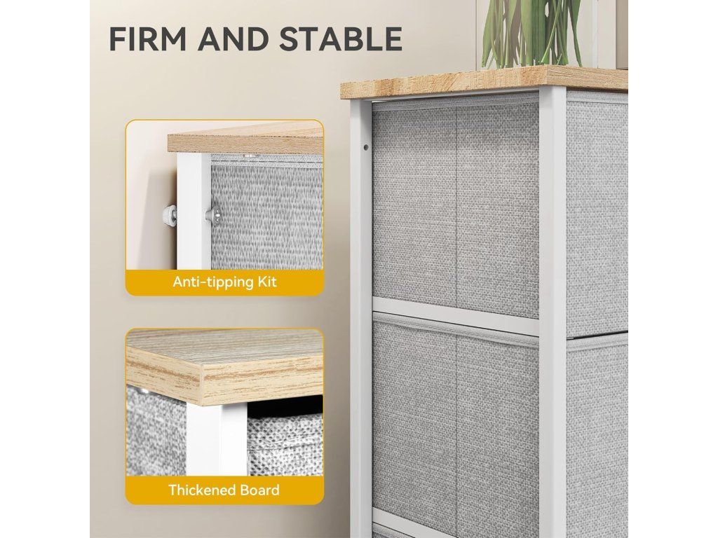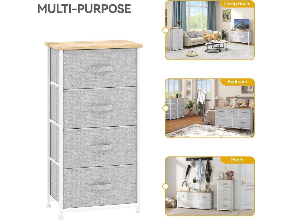 Komoda DWVO se 4 zásuvkami je praktické a stylové řešení pro organizaci vašeho domova 🏡. Díky kombinaci pevného ocelového rámu, dřevěné horní desky a textilních zásuvek nabízí ideální poměr mezi funkčností a moderním designem.