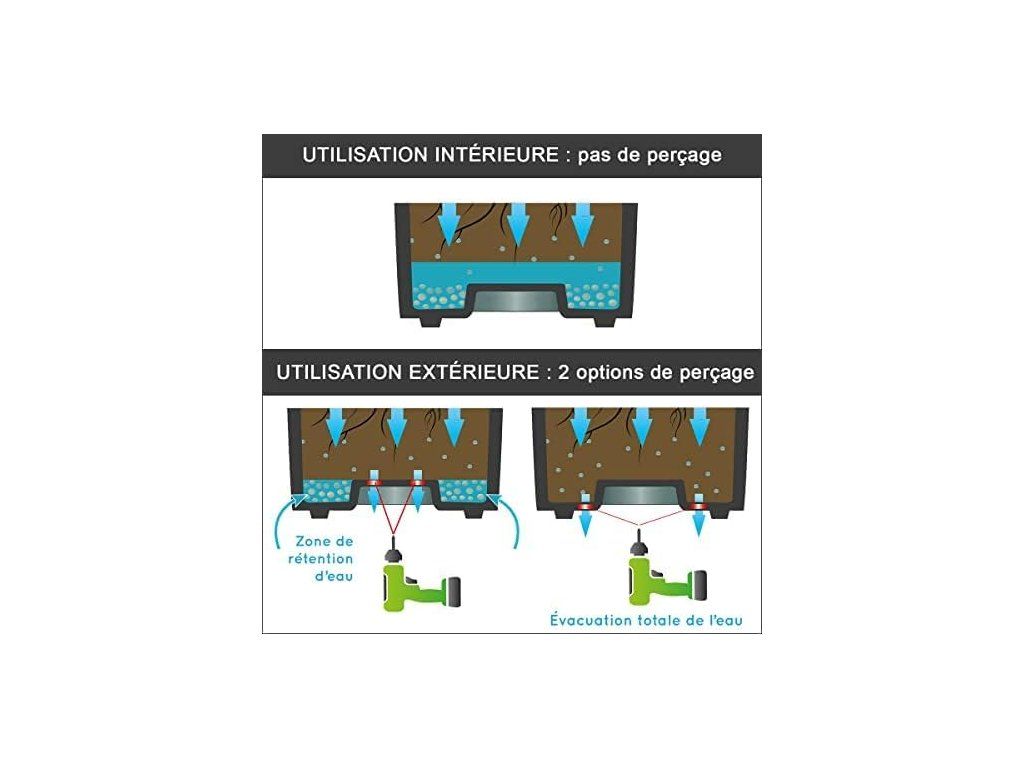 Součástí květináče je rezervoár na vodu, který pomáhá udržovat optimální vlhkost pro rostliny a usnadňuje péči.