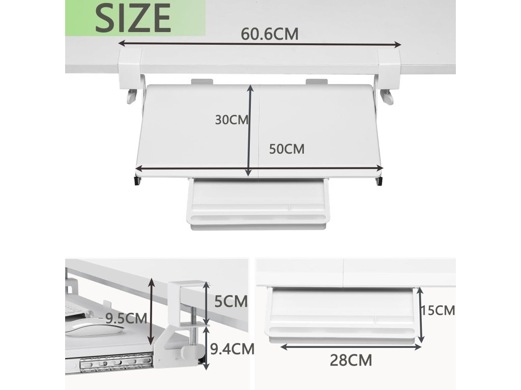 ETHU výsuvná podložka pod klávesnici 500 × 300 mm bílá