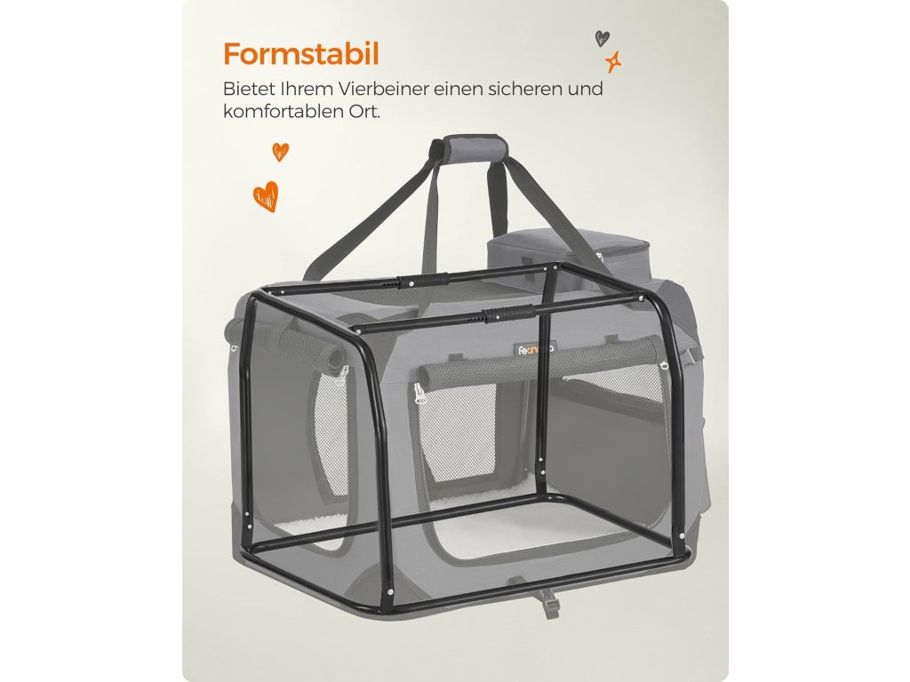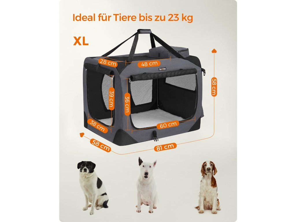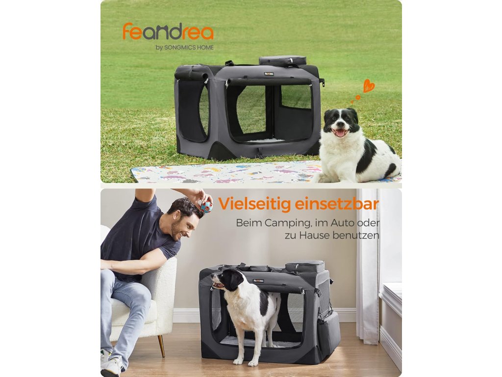 Feandrea skládací psí box XL PDC008G01 je praktické a pohodlné řešení pro cestování i domácí použití. Stabilní kovový rám zajišťuje pevnost konstrukce, zatímco odolná Oxford tkanina poskytuje dlouhou životnost.
