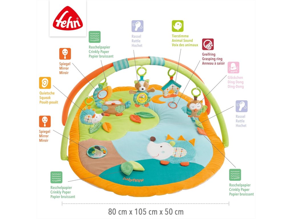 3D prvky na podložce vybízejí dítě k aktivnímu pohybu a objevování. Deka je vyrobena z příjemných textilních materiálů vhodných pro citlivou dětskou pokožku. Ideální jako první hrací prostor doma i jako dárek pro novorozené miminko.