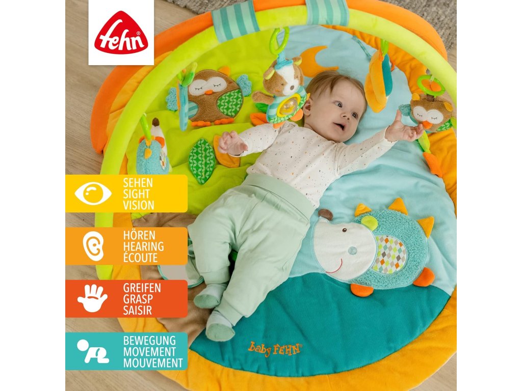 Aktivní hrací deka Fehn Sleeping Forest je navržena pro miminka od narození a nabízí bohatý prostor pro objevování, hraní i rozvoj smyslů. Měkká polstrovaná podložka poskytuje pohodlí při hře na zádech i při prvních pokusech o pasení koníčků.