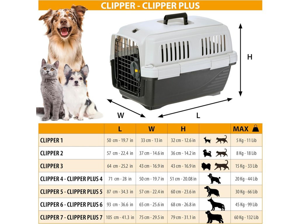 Praktický a bezpečný přepravní box pro malé psy a kočky je ideální pro cestování autem, vlakem i letadlem. Model Clipper 2 splňuje požadavky IATA, což umožňuje jeho použití při letecké přepravě (dle podmínek konkrétní aerolinky).