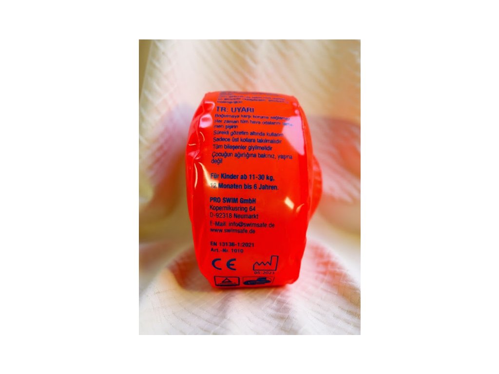 Náramky mají neroztříštitelné pěnové jádro z PE materiálu, které zajišťuje vztlak bez nutnosti nafukování. Díky tomu nehrozí náhlé splasknutí a ztráta vztlaku. Oranžová barva zajišťuje dobrou viditelnost dítěte ve vodě.