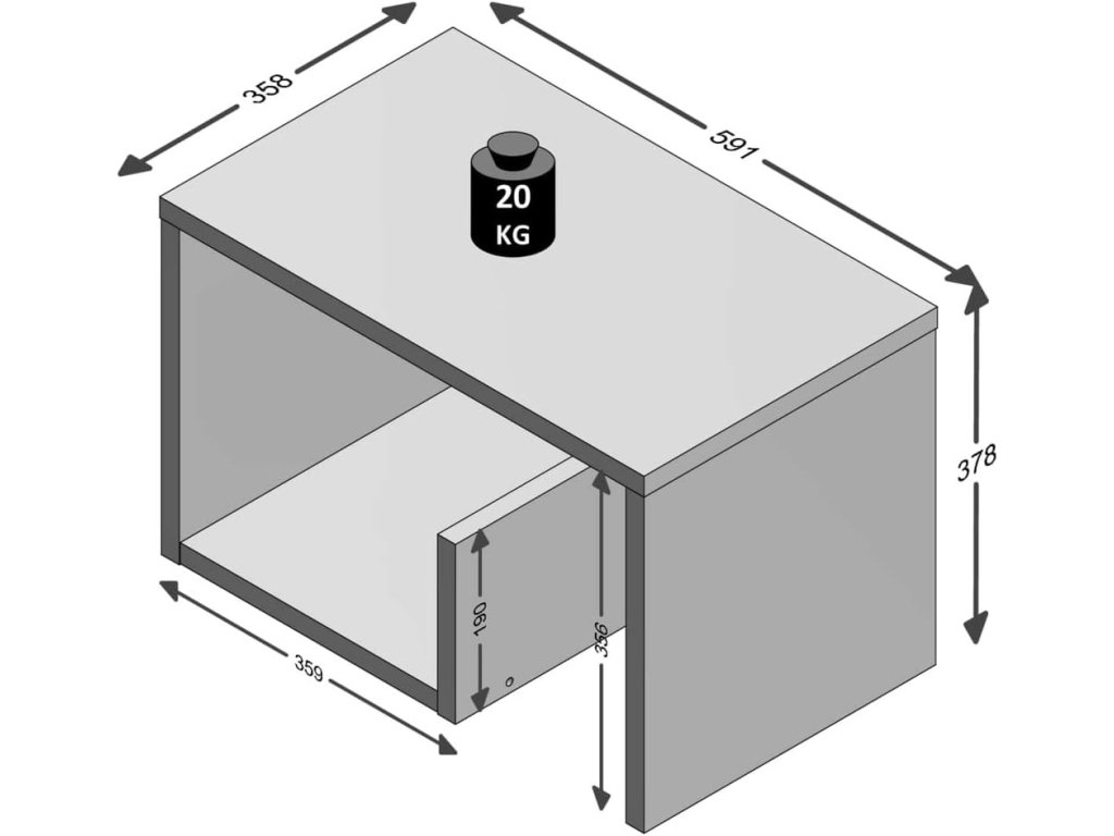 - Rozměry (Š × H × V): 59 × 36 × 38 cm
