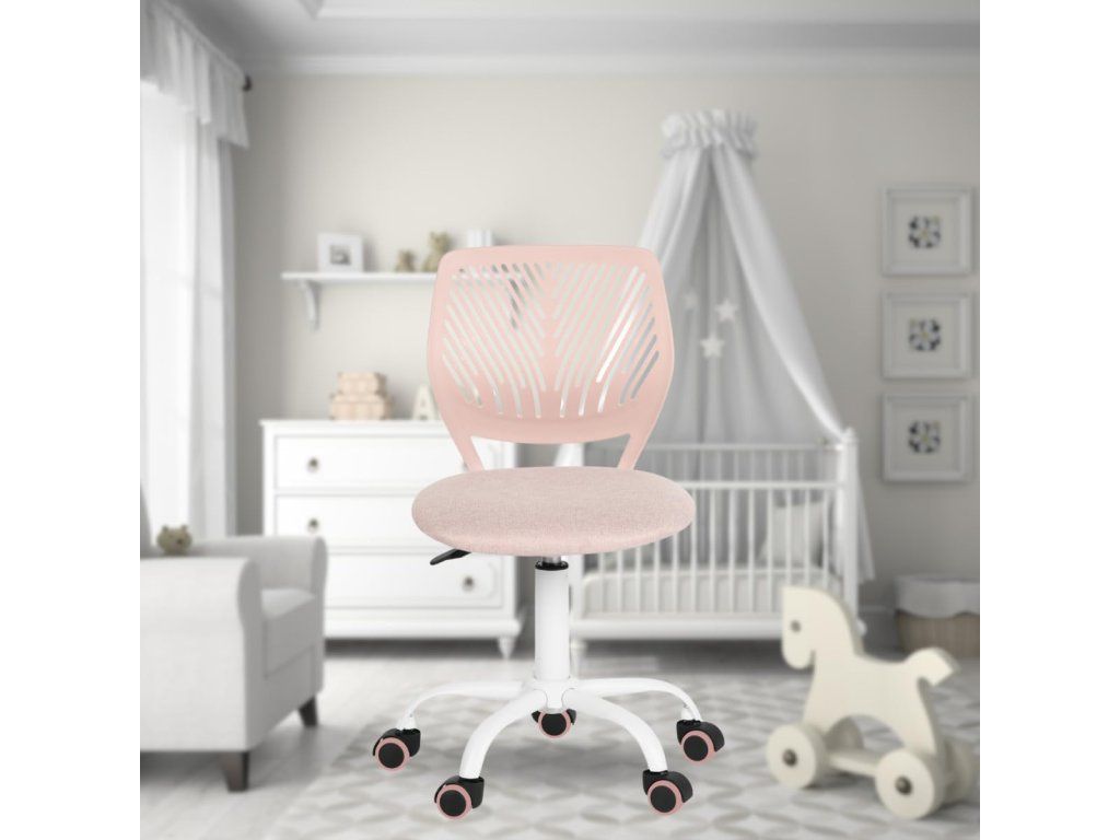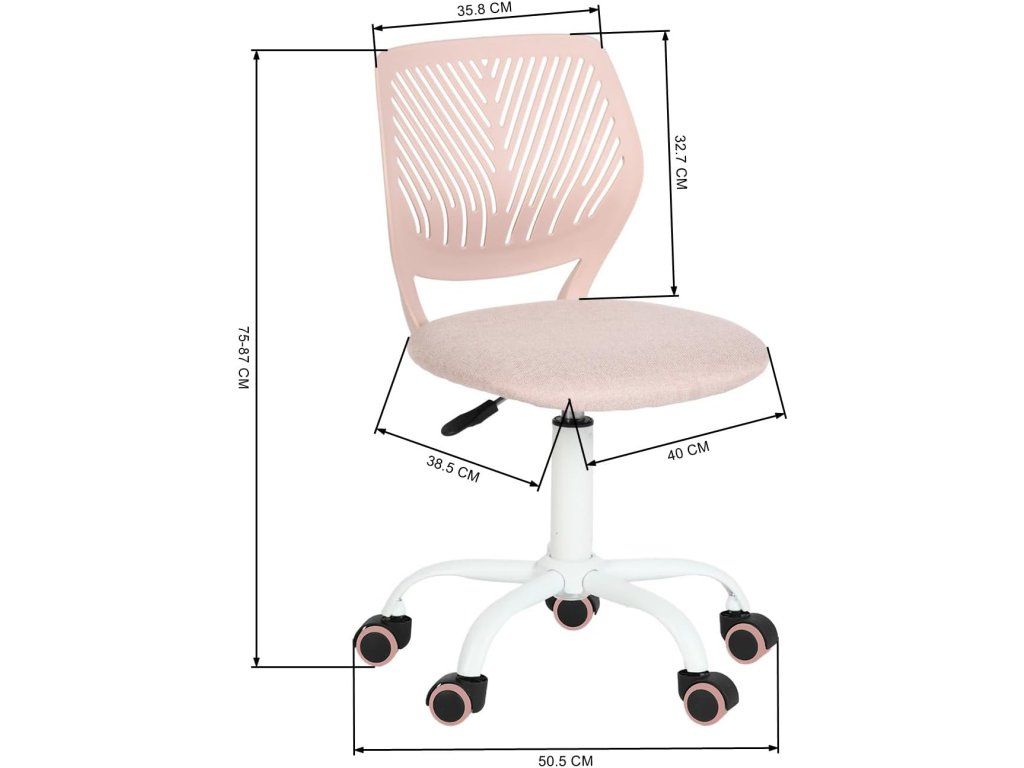 Židle zaujme moderním designem v jemném růžovém odstínu a ergonomicky tvarovaným opěradlem, které podporuje správné držení těla. Čalouněné sedadlo zajišťuje pohodlí i při delším sezení.