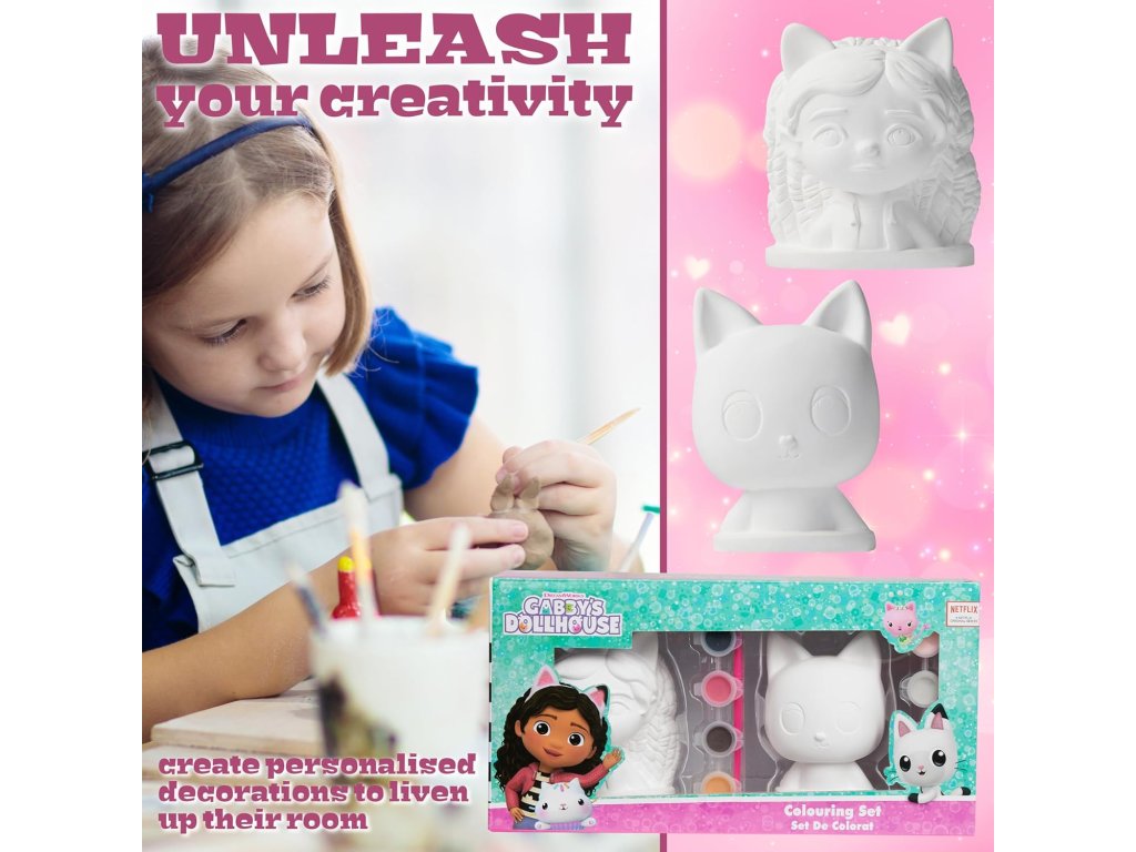Originální kreativní sada Gabby's Dollhouse potěší všechny malé fanoušky oblíbeného seriálu. Děti si mohou vlastnoručně vybarvit sádrové figurky a vytvořit si jedinečnou dekoraci nebo hračku.