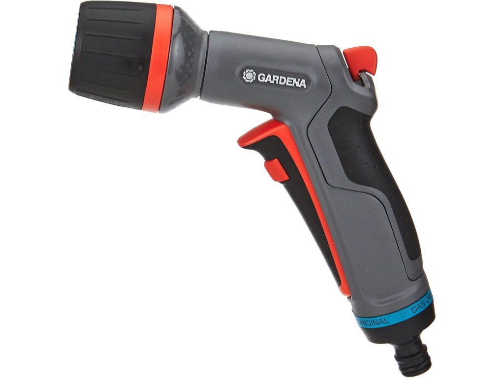 Ergonomická rukojeť s protiskluzovým povrchem a možností plynulé regulace průtoku zajišťuje maximální komfort při používání. Integrovaná funkce aretačního zámku umožňuje nepřetržité zavlažování bez nutnosti držení spouště.