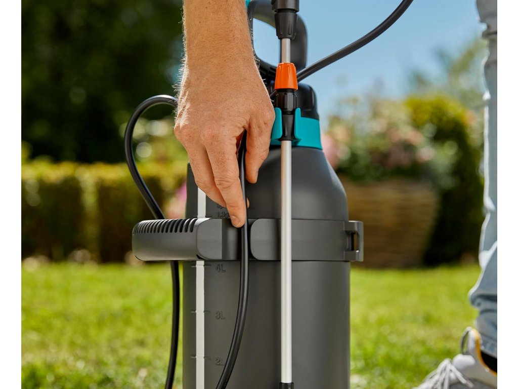 Gardena EasyPump 5 l je moderní akumulátorový tlakový postřikovač, který výrazně usnadňuje péči o zahradu. Díky integrované baterii vytváří tlak automaticky, takže již není nutné ruční pumpování. Postřikování rostlin, keřů nebo zeleniny je tak mnohem pohodlnější a efektivnější.