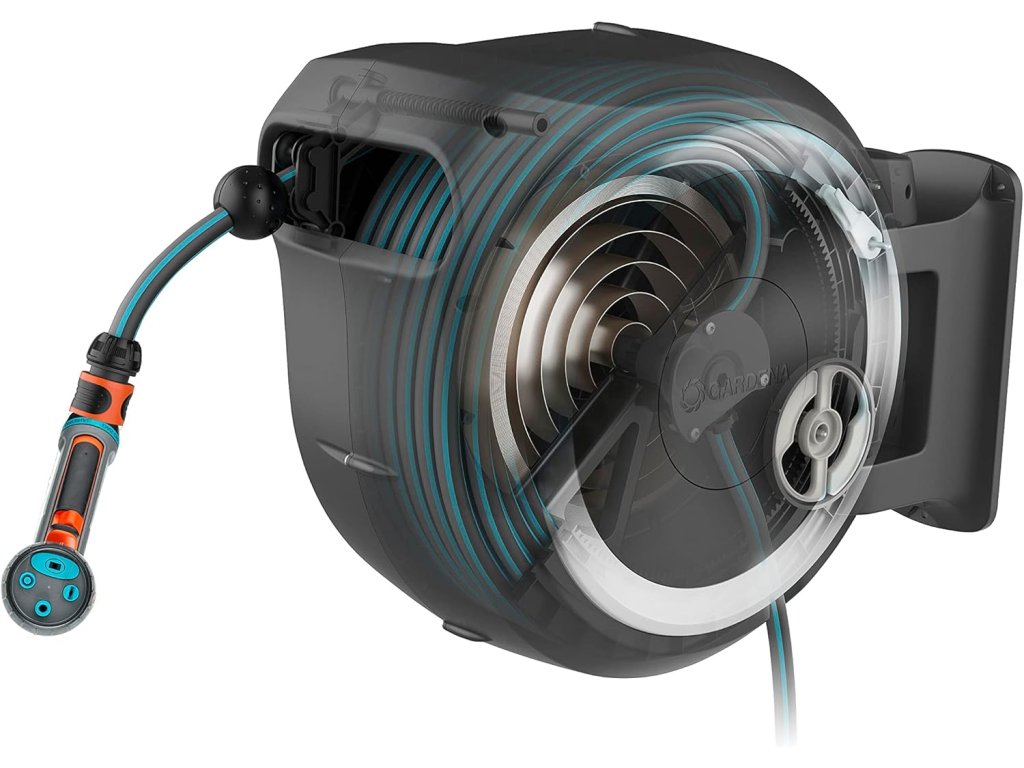 Box je otočný až o 180°, což zajišťuje maximální flexibilitu při zalévání a chrání hadici před zbytečným namáháním. Stačí hadici lehce povytáhnout a po krátkém zatažení se automaticky a bezpečně navine zpět.
