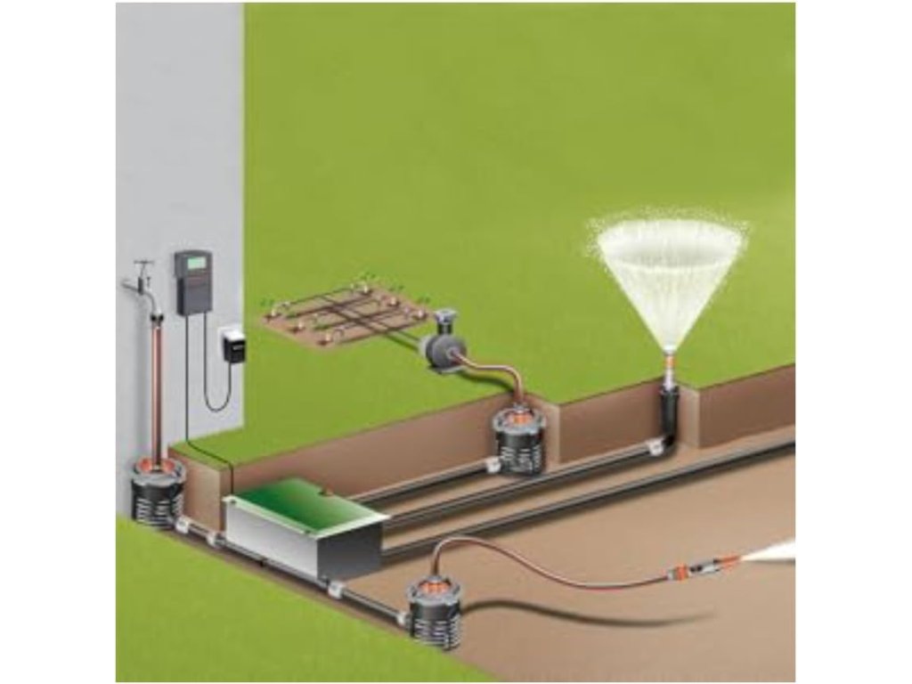 Sprinkler je vyroben z odolného plastu a je plně kompatibilní se systémem Gardena 25 mm. Lze jej snadno integrovat do stávajícího zavlažovacího okruhu nebo použít jako náhradní díl.