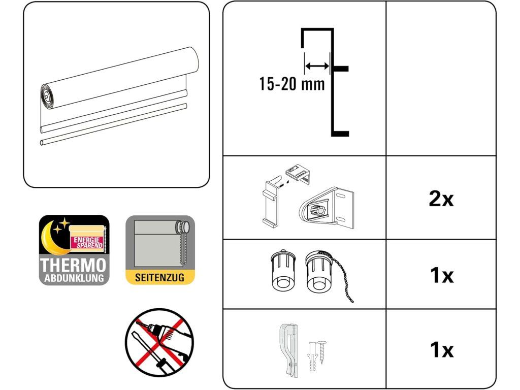 - Typ montáže: bez vrtání (na okenní rám)