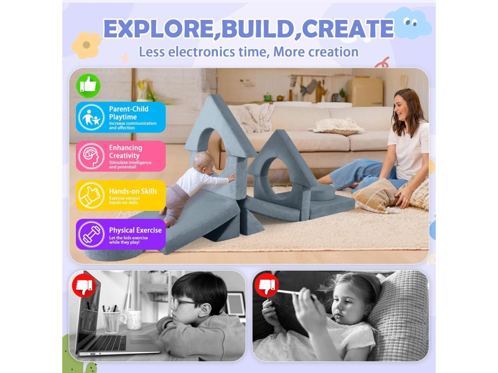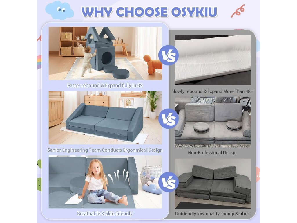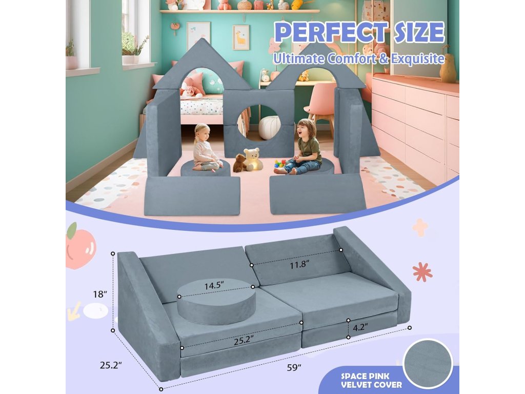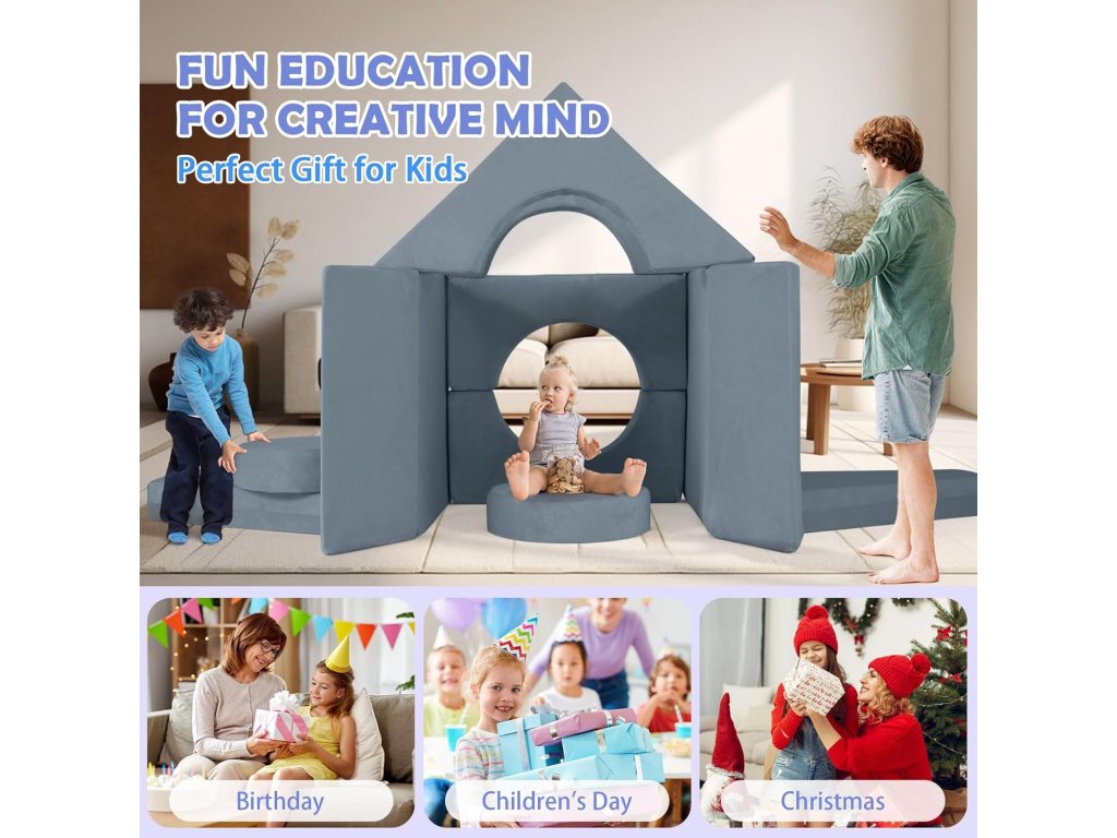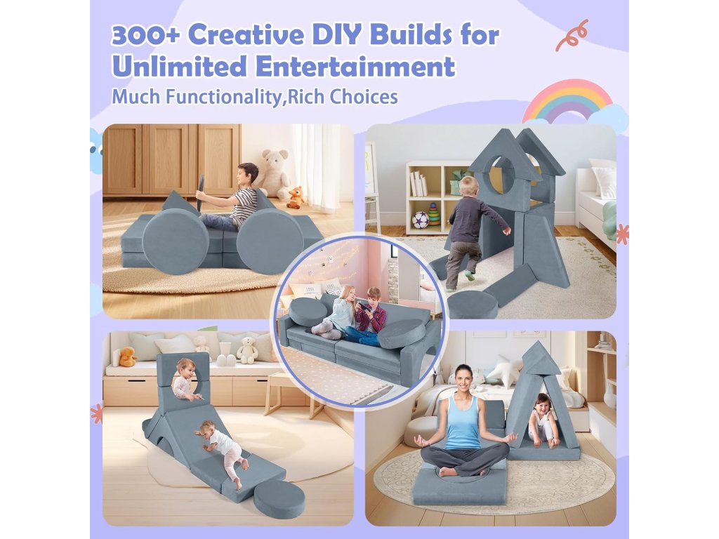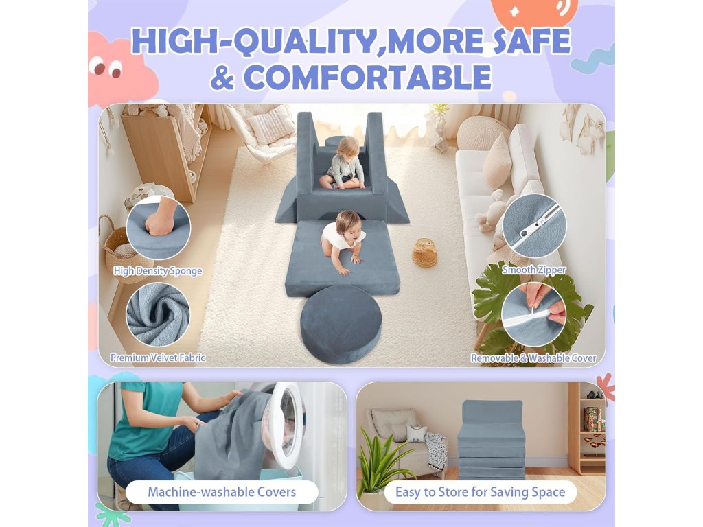 Pohovka je navržena tak, aby byla lehká pro manipulaci, ale zároveň dostatečně pevná pro bezpečné hraní. Ideální dárek pro děti, který kombinuje zábavu i praktičnost.