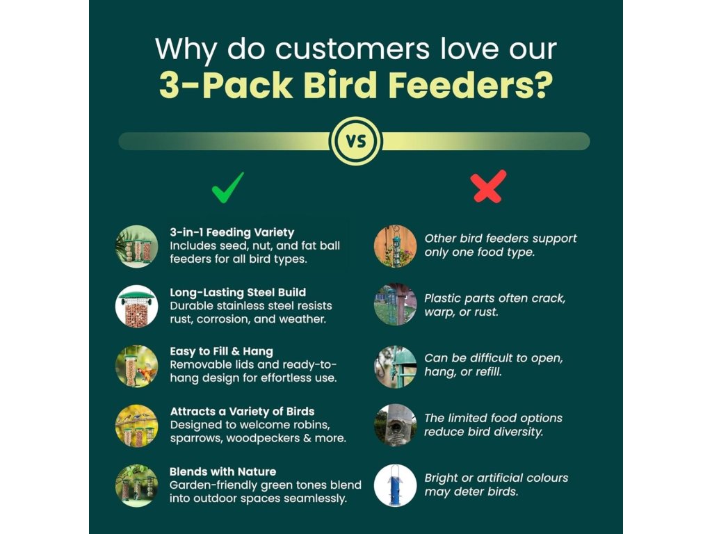 Sada Green Haven je skvělou volbou pro každého, kdo chce vytvořit ideální místo pro krmení ptáků a zároveň si užívat jejich pozorování přímo na své zahradě.