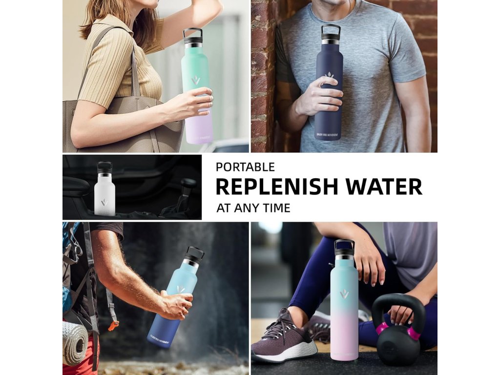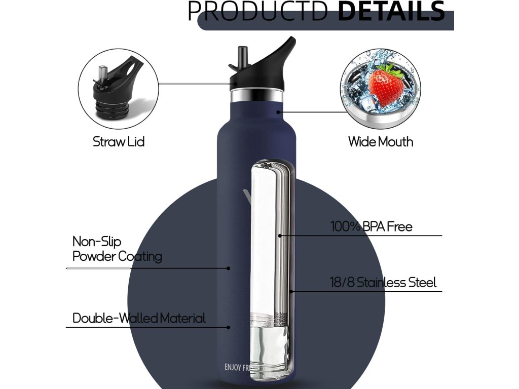 Láhev je vyrobena z kvalitní ušlechtilé oceli, neobsahuje BPA a je zdravotně nezávadná. Součástí balení je praktické víčko s brčkem pro pohodlné pití a náhradní uzávěr. Konstrukce je odolná proti vytečení, takže se hodí i do batohu nebo sportovní tašky.